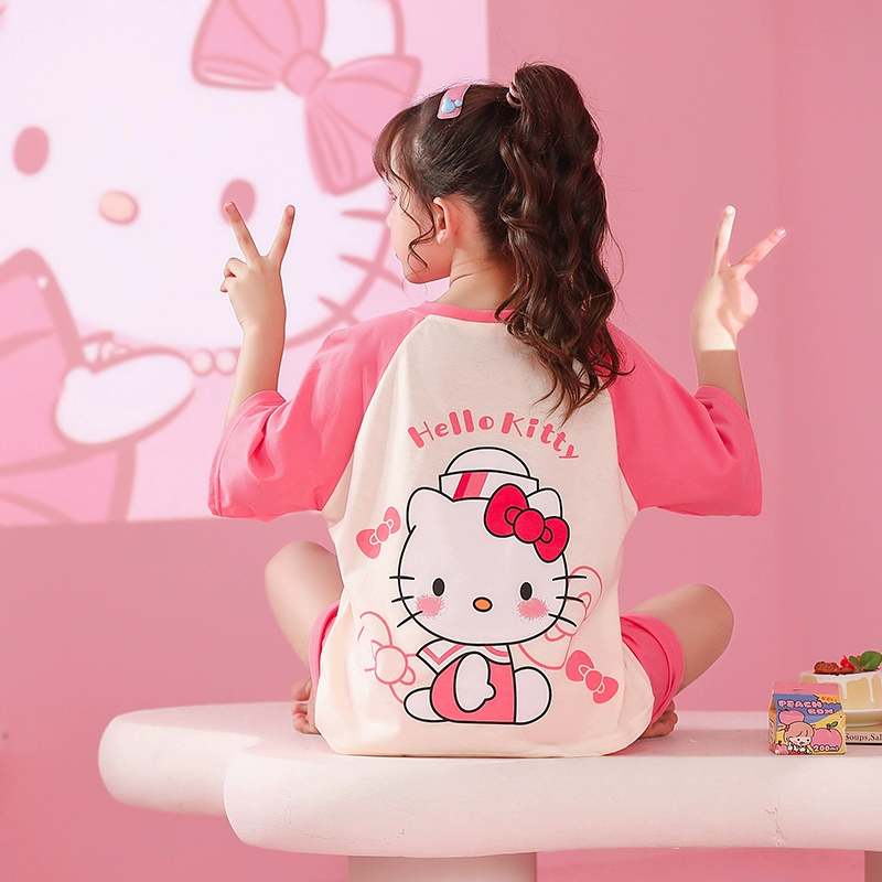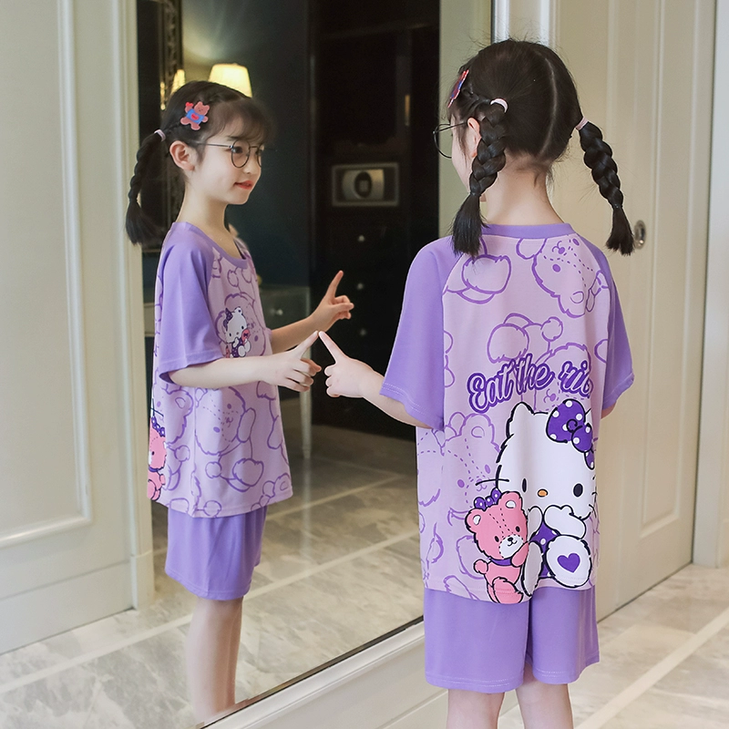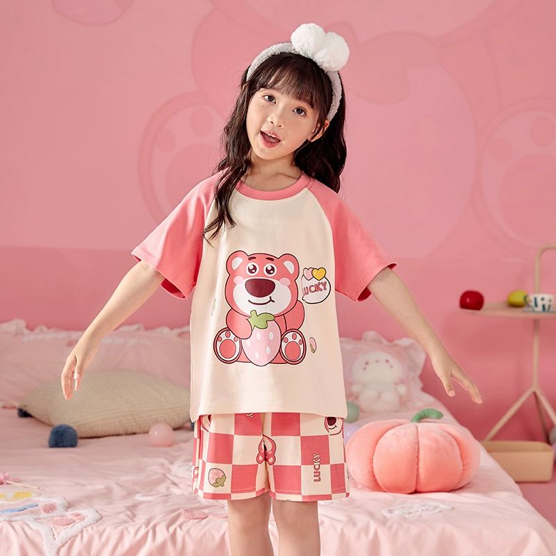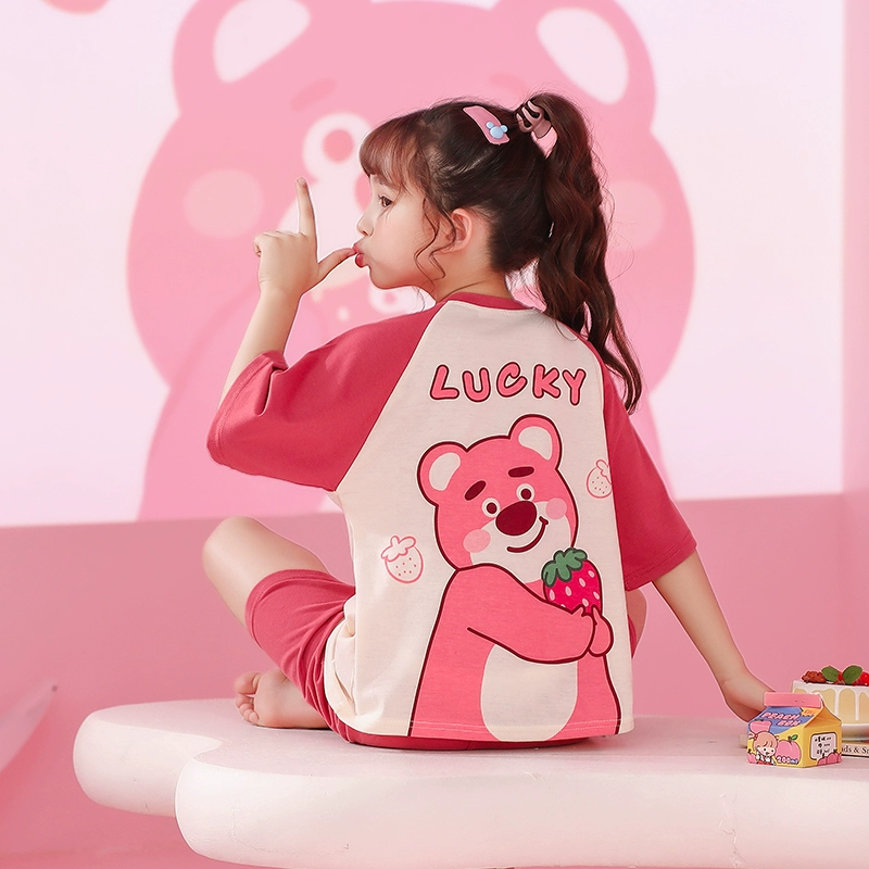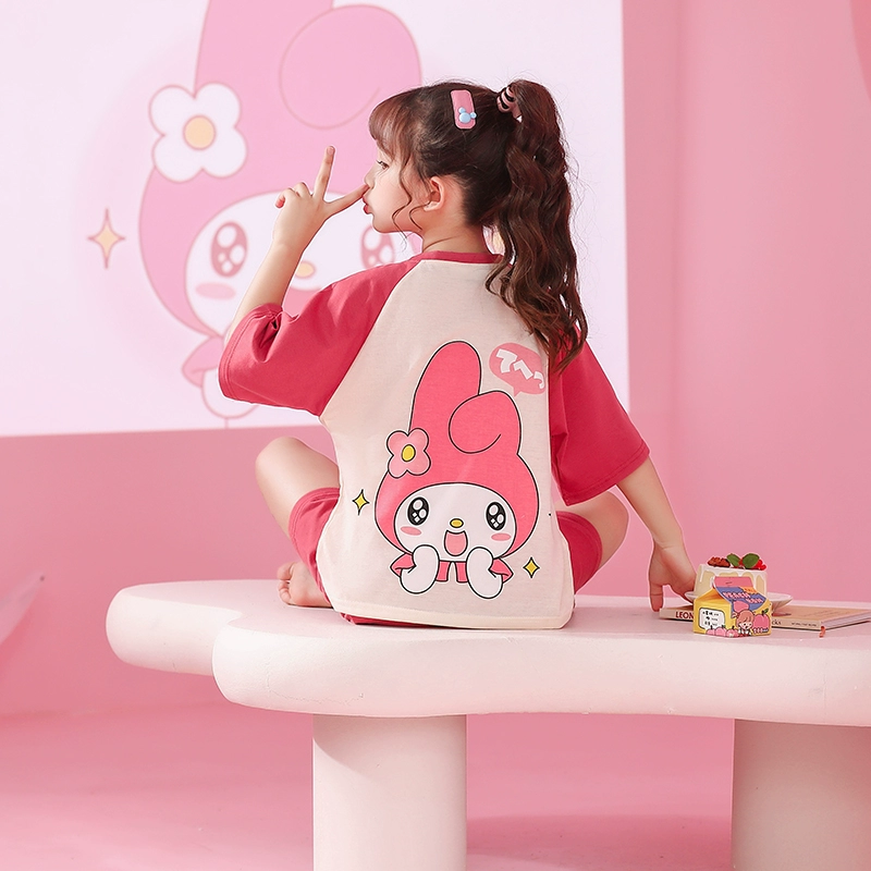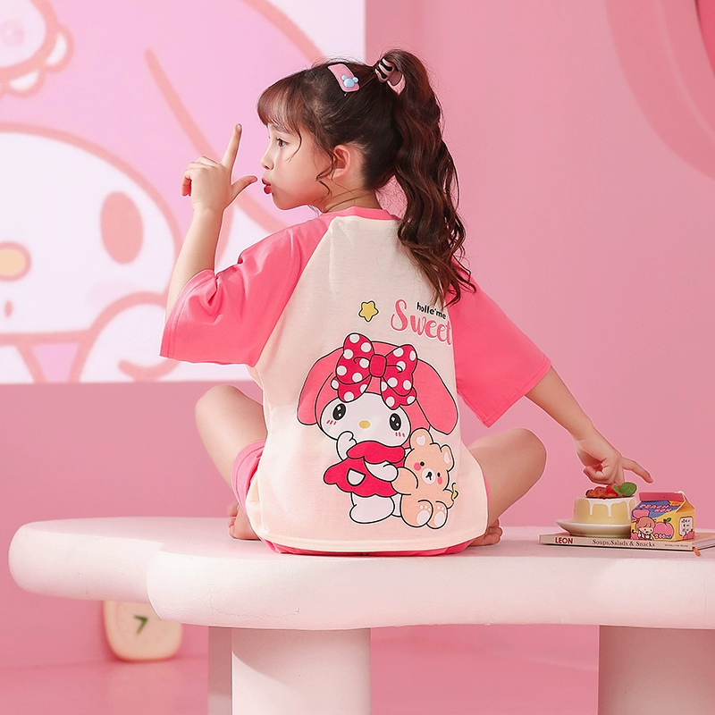 | nameOriginal | Melody girls pajamas pure cotton summer short-sleeved thin little girl boy baby strawberry air-conditioned home clothes set |