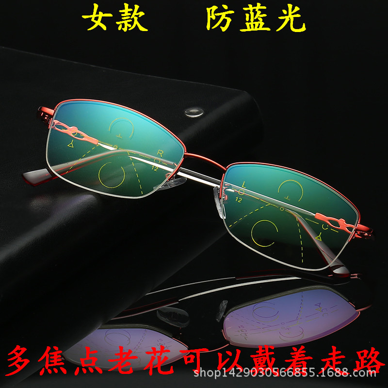 Memory titanium anti-blue light reading glasses female middle-aged and elderly automatic zoom progressive multi-focus dual-purpose reading glasses
