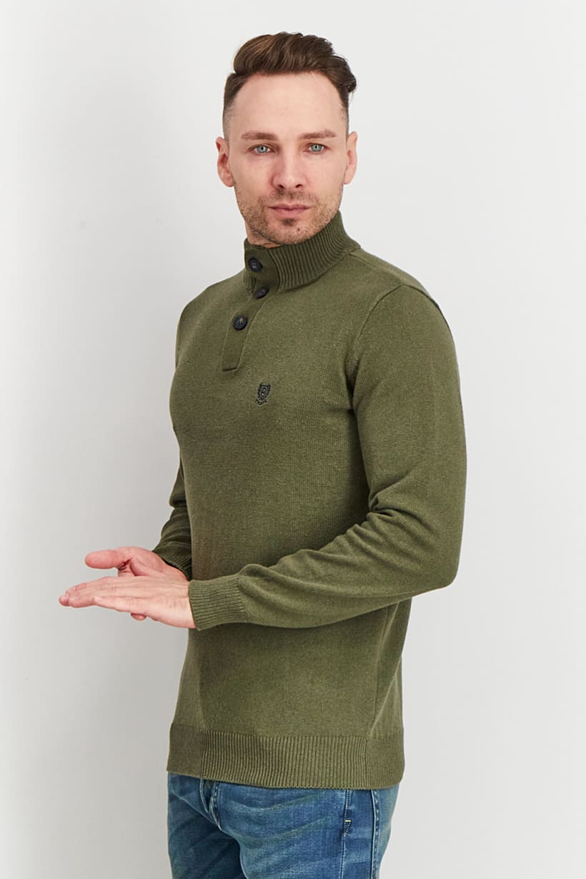| nameOriginal | Men Crew Neck Long Sleeve Knitted Sweater, Olive |