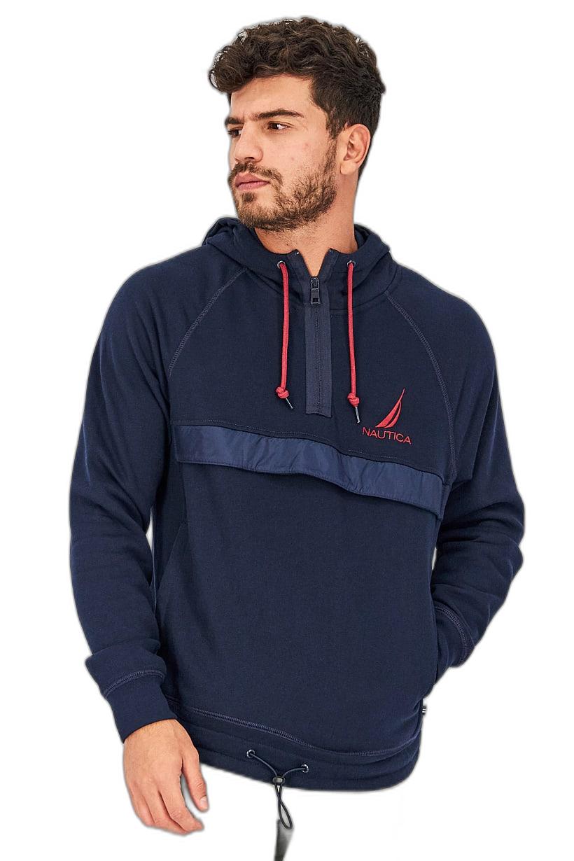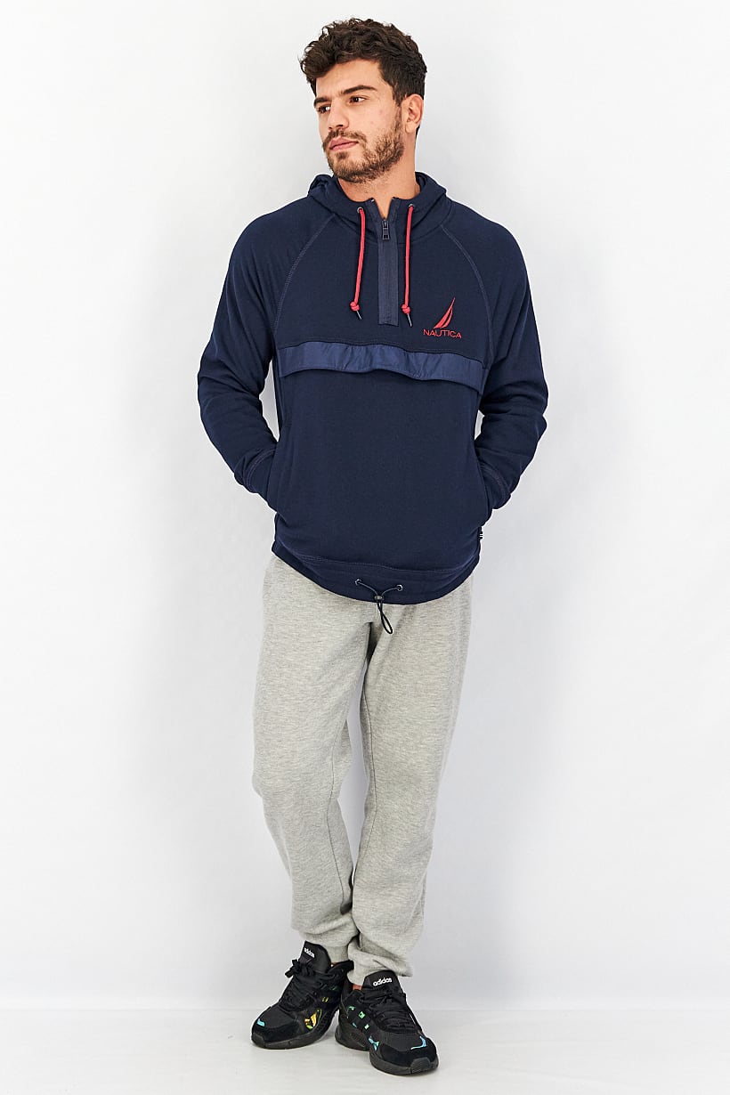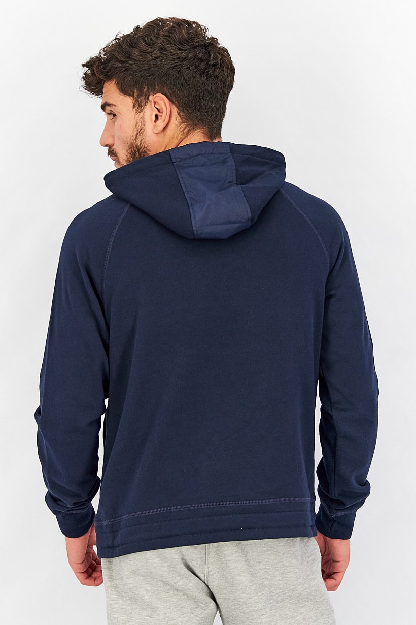 Care : Machine washable, Size shown : International, Sleeve Length : Long Sleeve, Sweatshirt Style : Hoodie, Thickness : Light, Type of Neckline & Collar : Hood with drawstrings , Disclaimer : Product color may slightly vary due to photographic lighting sources or your monitor settings., Fabrics : 55% Cotton, 45% Polyester, Pattern & Print : Embroidered logo, Types of Closures : Pullover, Color Family : Navy Blue,