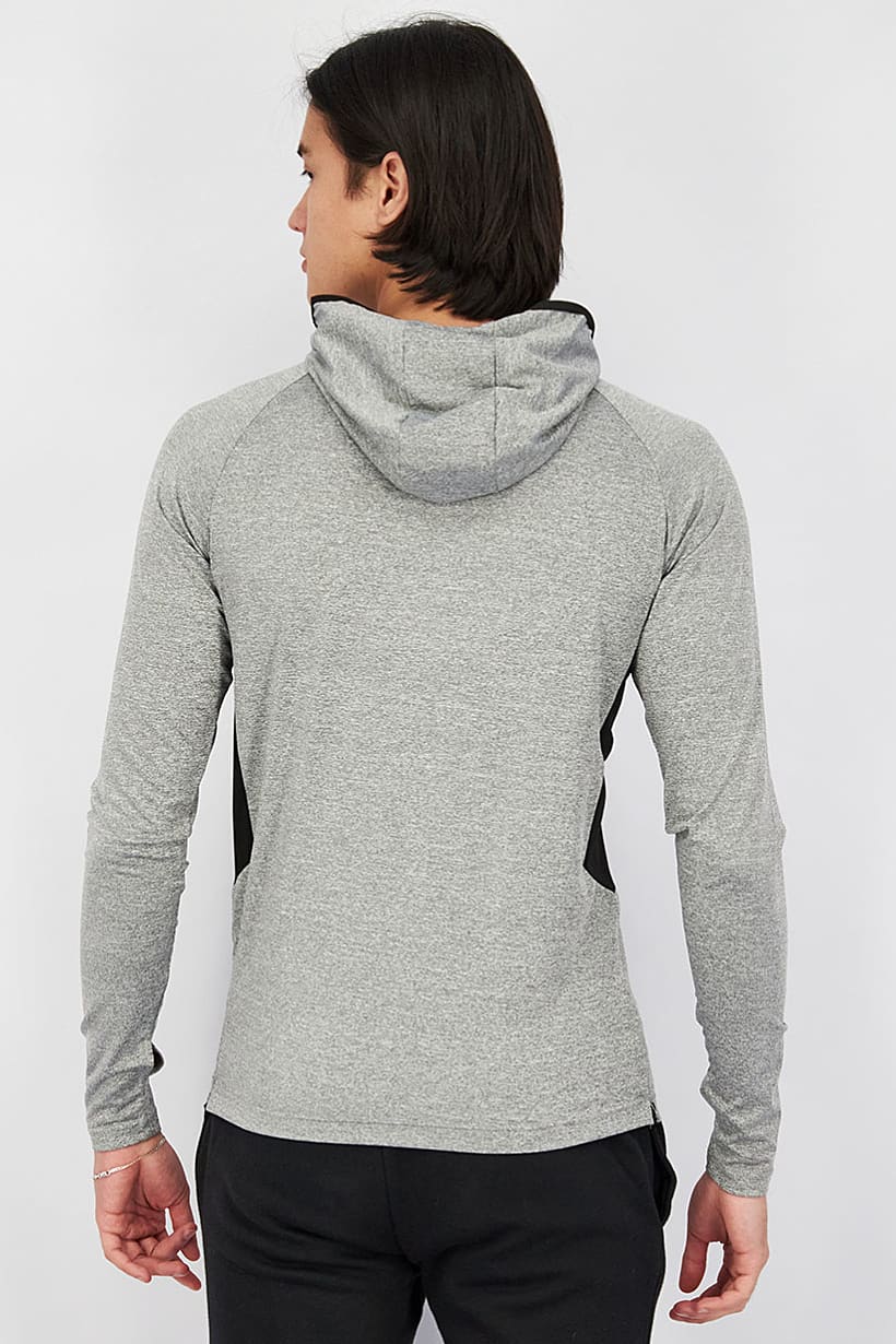 Care : Machine washable, Fit : Regular fit, Size shown : International, Thickness : Light, Type of Neckline & Collar : Hood, Type of Sport : Training, Fabrics : 95% Polyester, 5% Elastane, Pattern & Print : Heather, Sportswear Type : Sweatshirts, Types of Closures : Pullover, Color Family : Grey,
