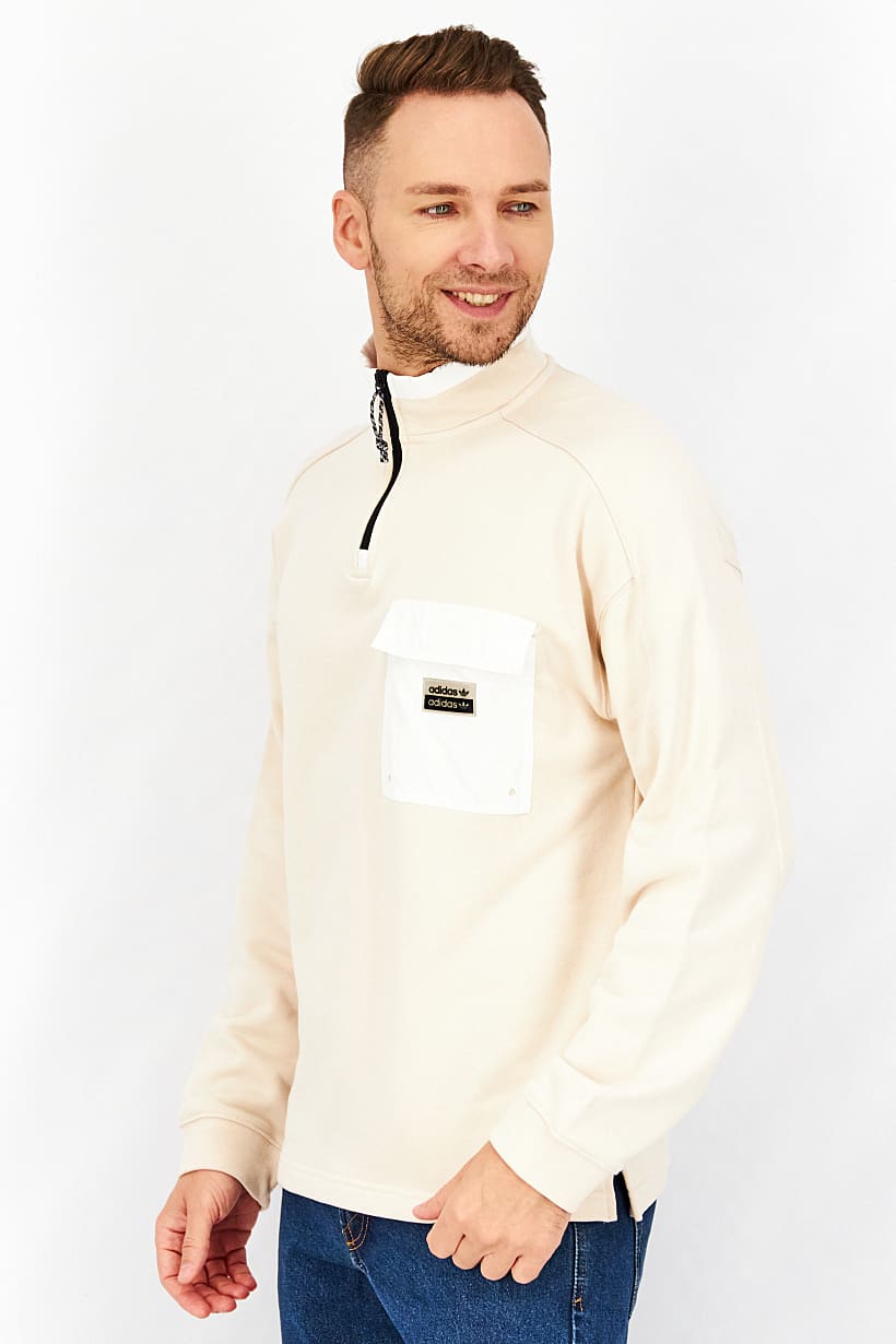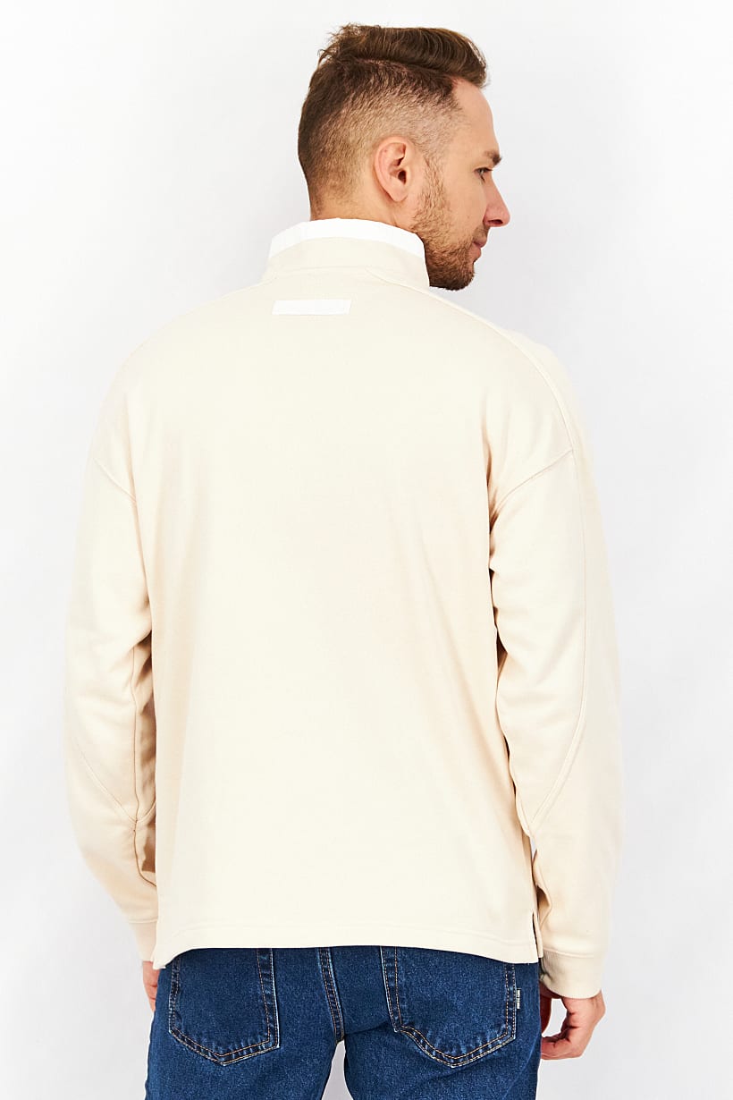 Care : Machine washable, Size shown : International, Sleeve Length : Long Sleeve, Sweatshirt Style : Pullovers, Thickness : Medium, Type of Neckline & Collar : Mock neckline, Disclaimer : Product color may slightly vary due to photographic lighting sources or your monitor settings., Fabrics : 100% Cotton, Pattern & Print : Textured pattern, Types of Closures : Zipper closure, Pullover, Color Family : Beige,