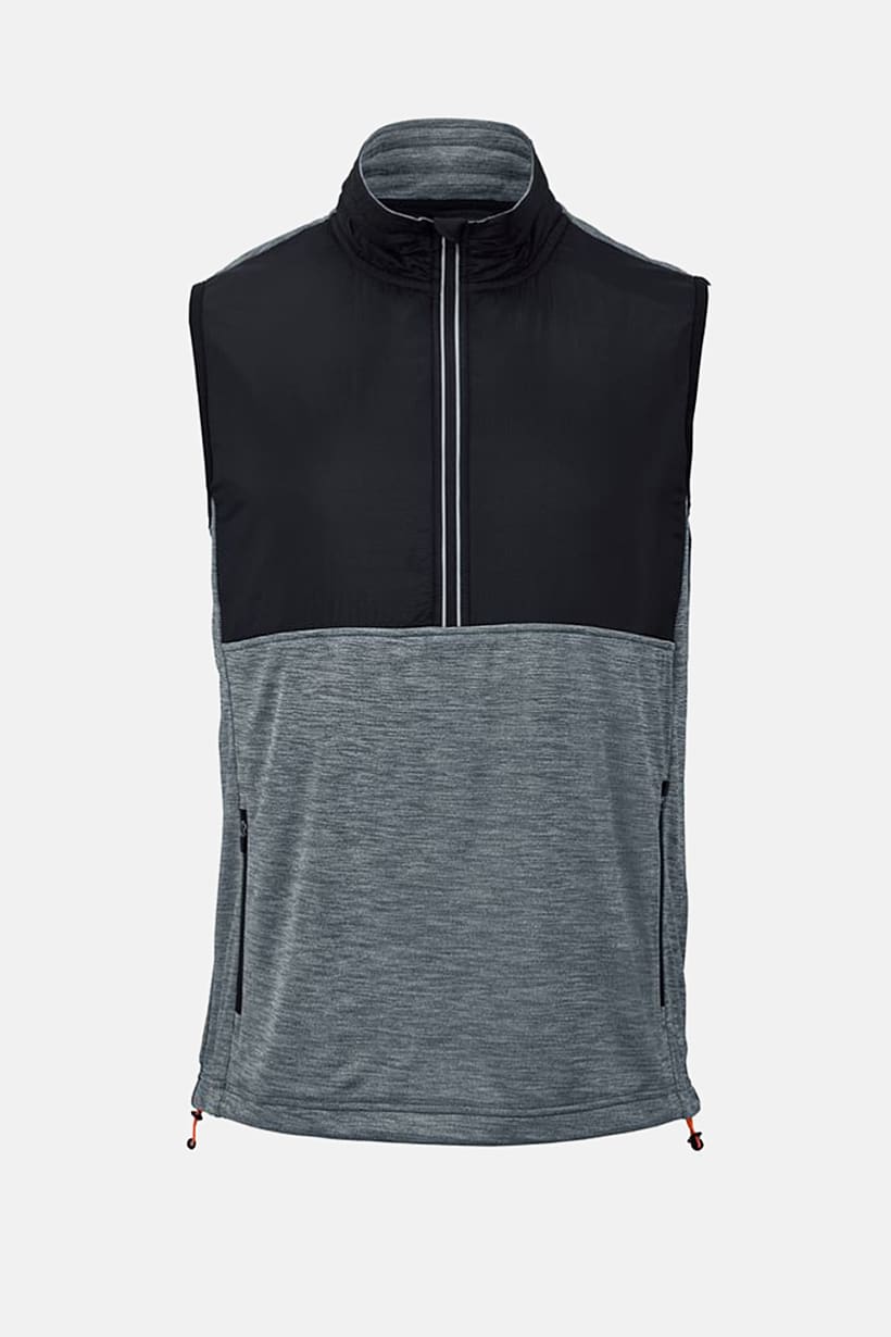 Care : Machine washable, Ideal For : Men, Type of Sport : Running, Types of Hem : Straight hem, Types of Neckline & Collar : Round neckline, Types of Sleeve : Sleeveless, Disclaimer : Product color may slightly vary due to photographic lighting sources or your monitor settings., Fabrics : 100% Polyester, Pattern & Print : Heather, Sportswear Type : Vests, Types of Closures : Zipper closure, Color Family : Black, Grey,