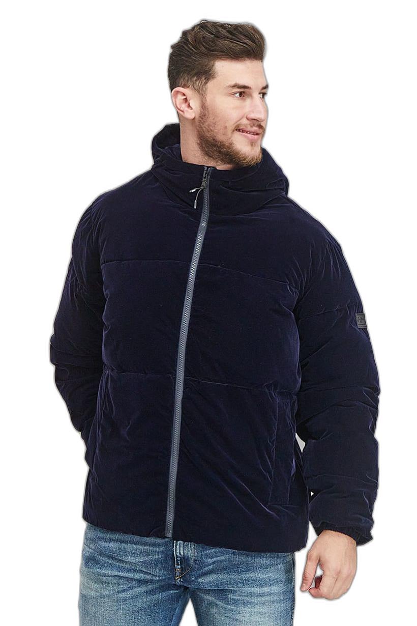 Men Clothing, Jackets & Outerwear, men plain velvet hooded puffer jacket navy