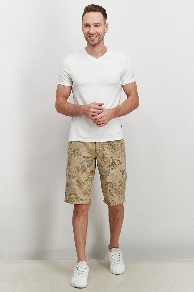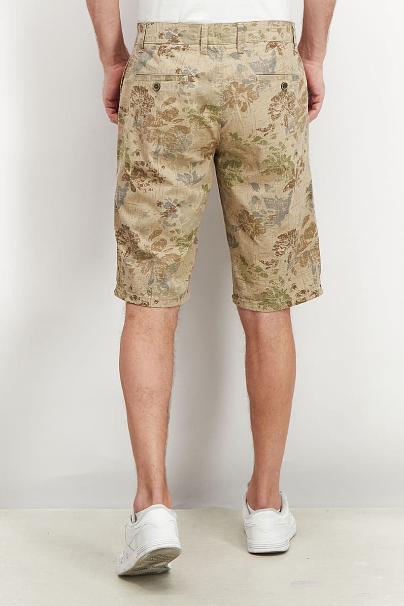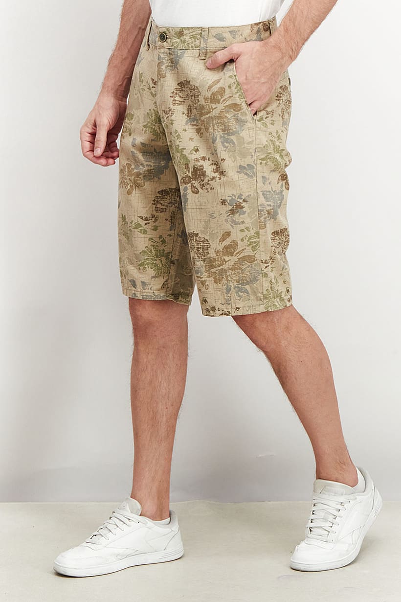 Care : Machine washable, Fit : Regular fit, No of pockets : 4, Size shown : Inches, Stretch Type : No stretch, Type of Short : Basic short, Bottom Closure : Button, Fabrics : 100% Cotton, Occasion : Casual, Pattern & Print : Allover print, Color Family : Beige,