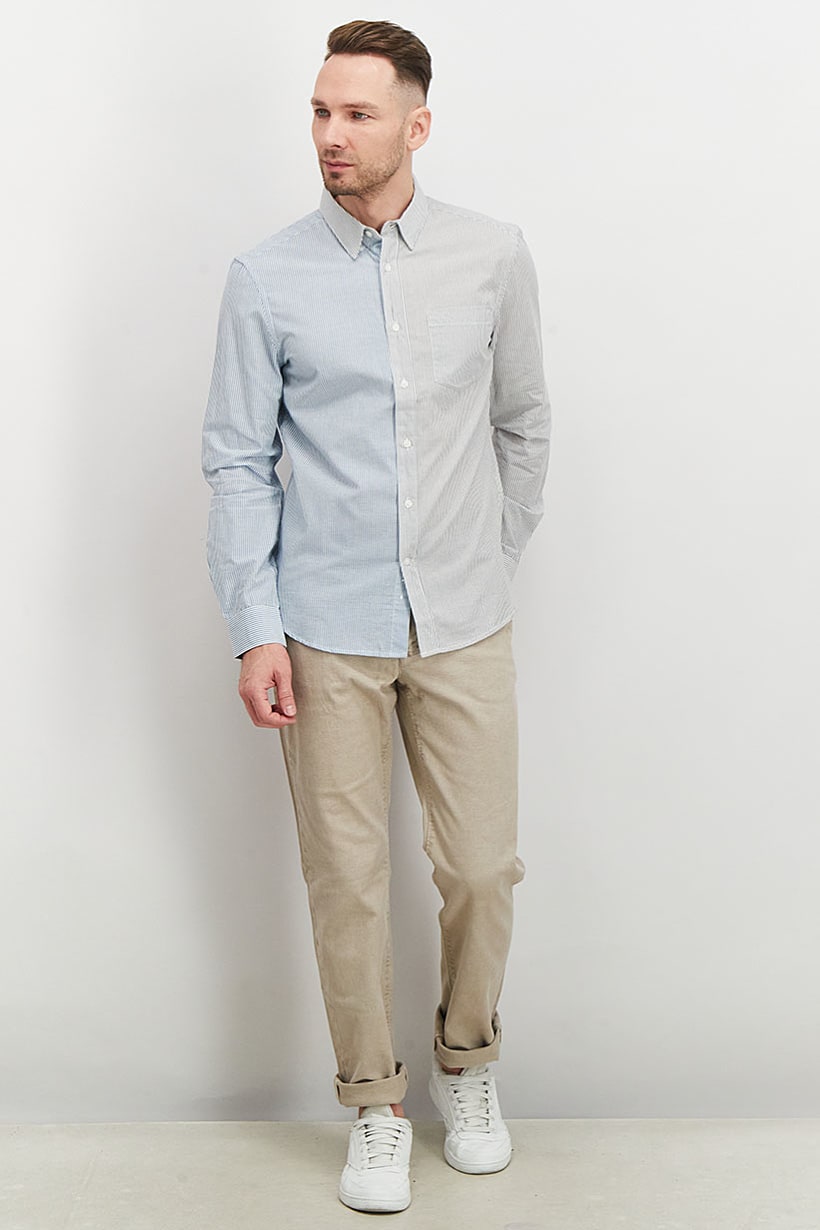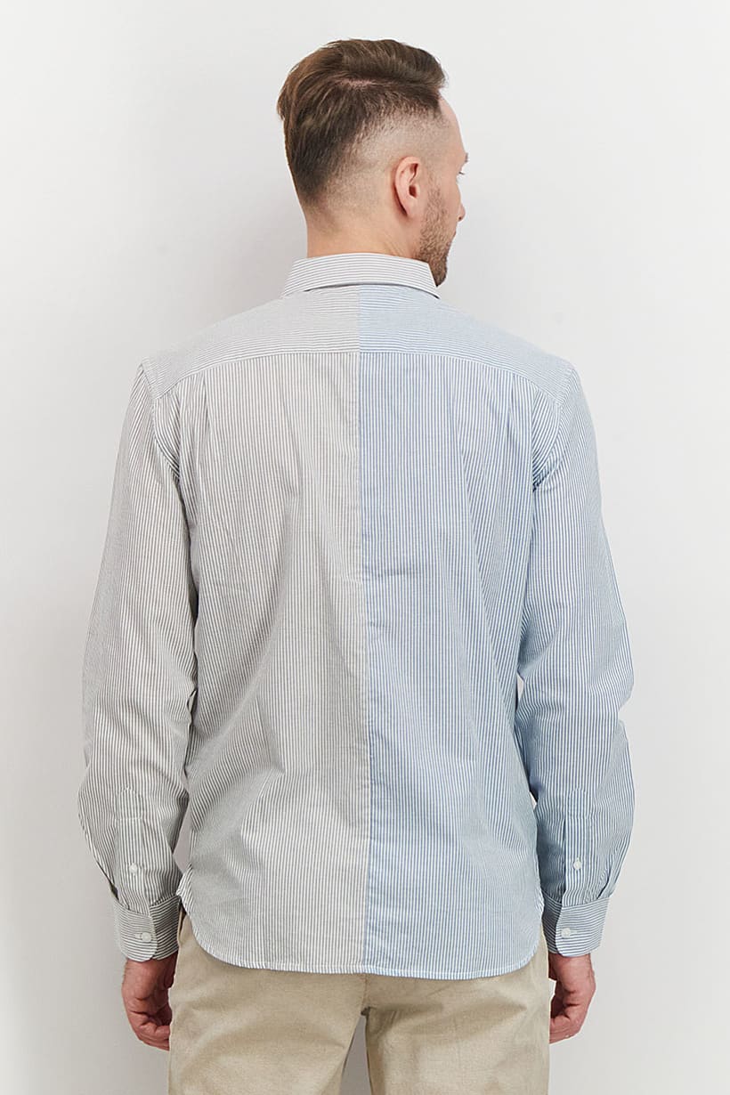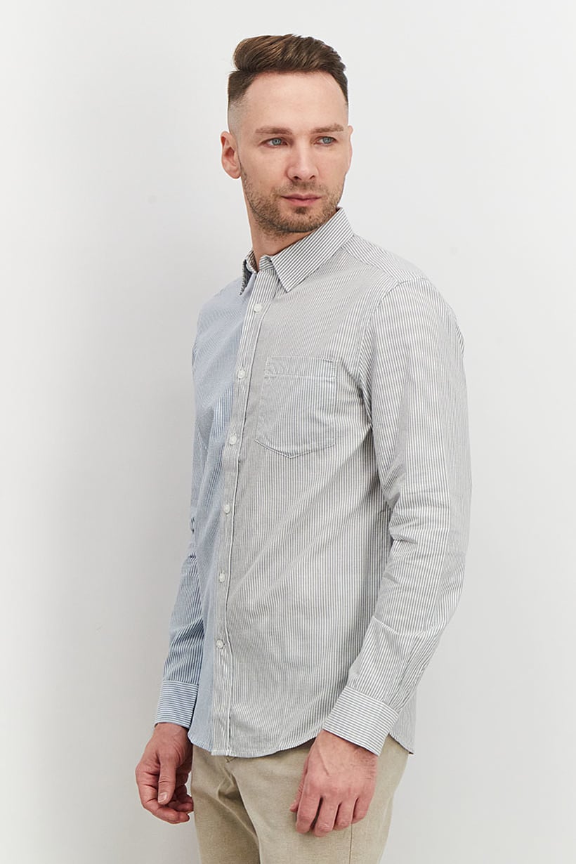 | nameOriginal | Men Regular Fit Long Sleeves Two Tone Stripe Casual Shirt, Blue and Grey |