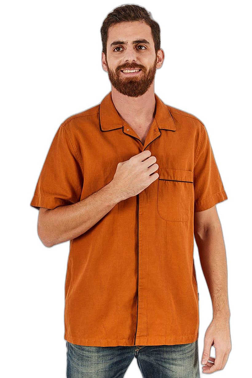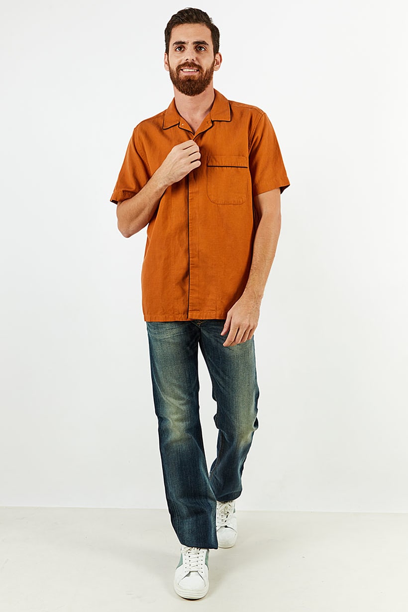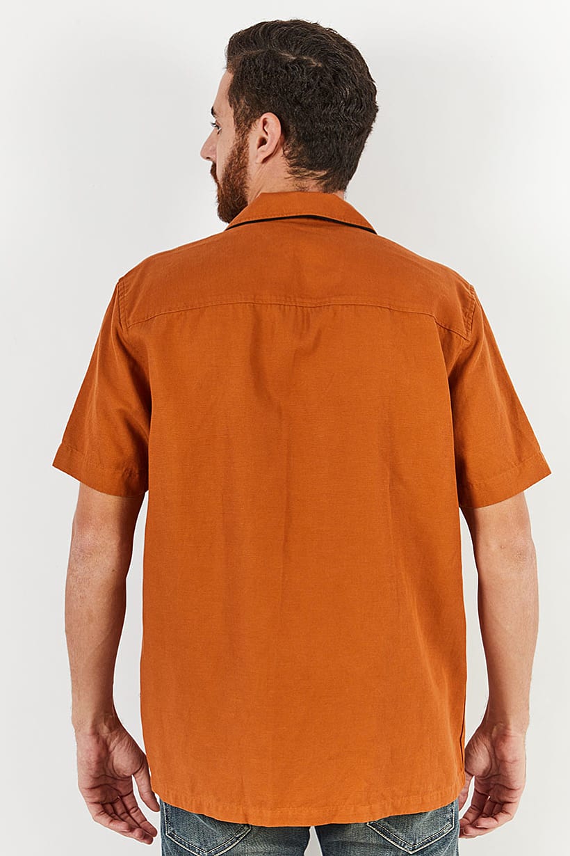 Care : Machine washable, Fit : Regular fit, Size shown : International, Sleeve Length : Short Sleeve, Types of Hem : Straight hem, Types of Neckline & Collar : Spread collar , Disclaimer : Product color may slightly vary due to photographic lighting sources or your monitor settings., Fabrics : 55% Lyocell, 25% Linen, 20% Cotton, Occasion : Casual, Pattern & Print : Plain/Solid, Types of Closures : Button, Color Family : Brown,