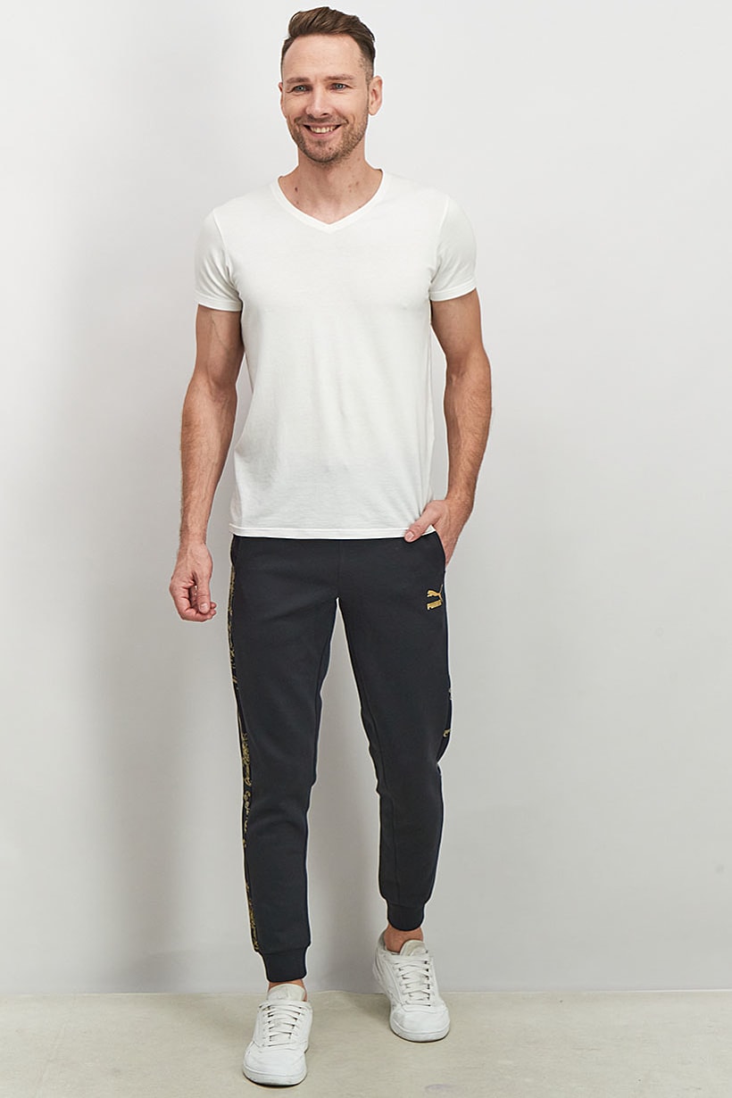 | sub_Categories | Men Clothing, Sportswear, men sport fit training luxe aop track pants black and gold |