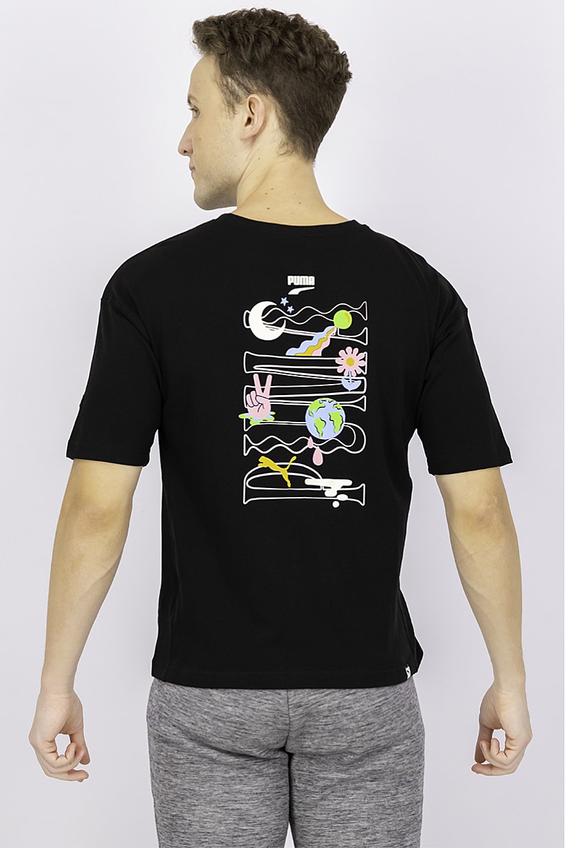 Care : Machine washable, Fit : Sportswear Fit, Size shown : Asian, Thickness : Light, Type of Sport : Walking, Fabrics : 100% Cotton, Pattern & Print : Graphic print, Sportswear Type : T-Shirt, Color Family : Black,