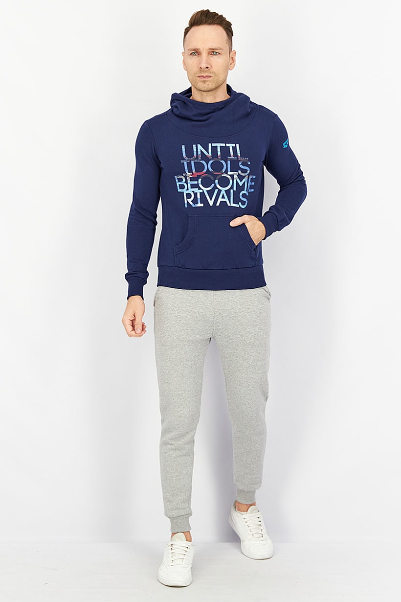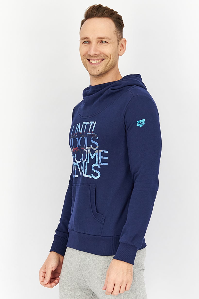 Care : Machine washable, Fit : Sportswear Fit, Size shown : US, Thickness : Light, Type of Sport : Running, Disclaimer : Product color may slightly vary due to photographic lighting sources or your monitor settings., Fabrics : 80% Cotton, 20% Polyester, Pattern & Print : Graphic print, Sportswear Type : Hoodies, Types of Closures : Pullover, Color Family : Navy Blue, Sleeve Length : Long Sleeve, Type of Neckline & Collar : Hood,
