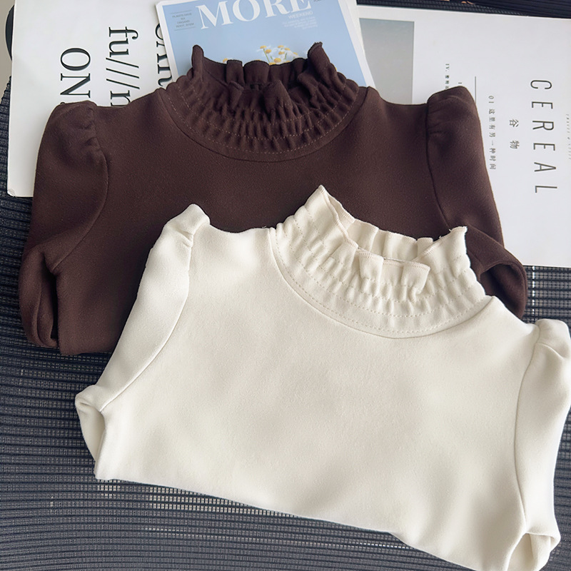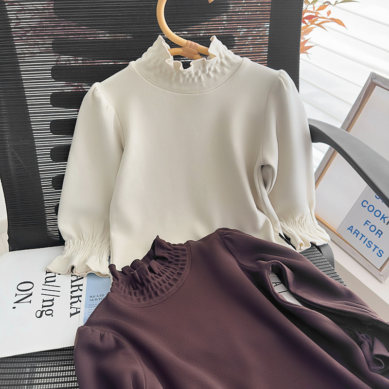 | nameOriginal | Mengdangdang girls' half turtleneck bottoming shirt 2023 autumn and winter children's Korean-style retro puff sleeve inner top |