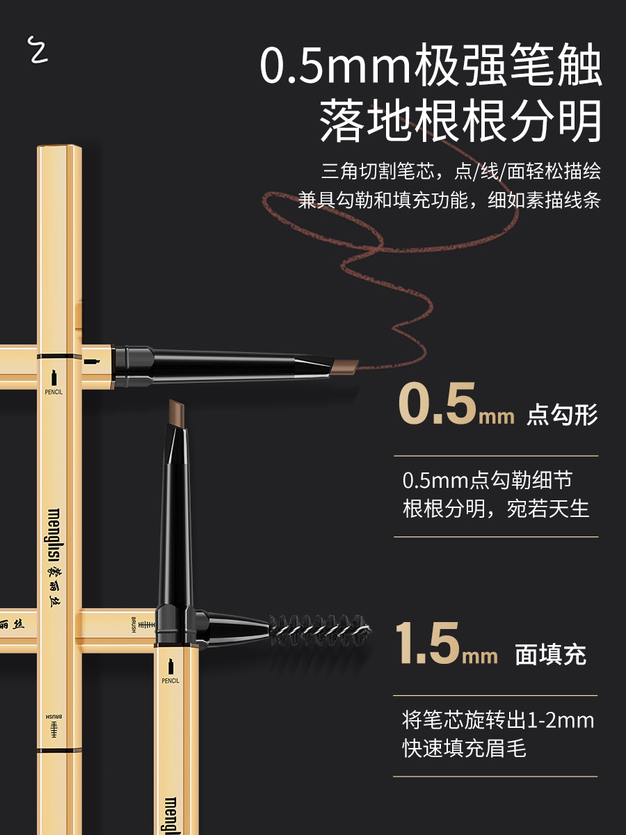 | nameOriginal | Menglisi recommends natural waterproof, long-lasting, non-fading, anti-sweat, ultra-fine, ultra-fine head eyebrow pencil for beginners. |