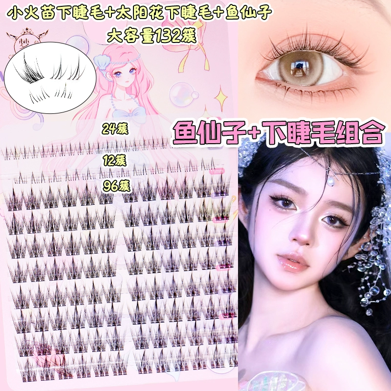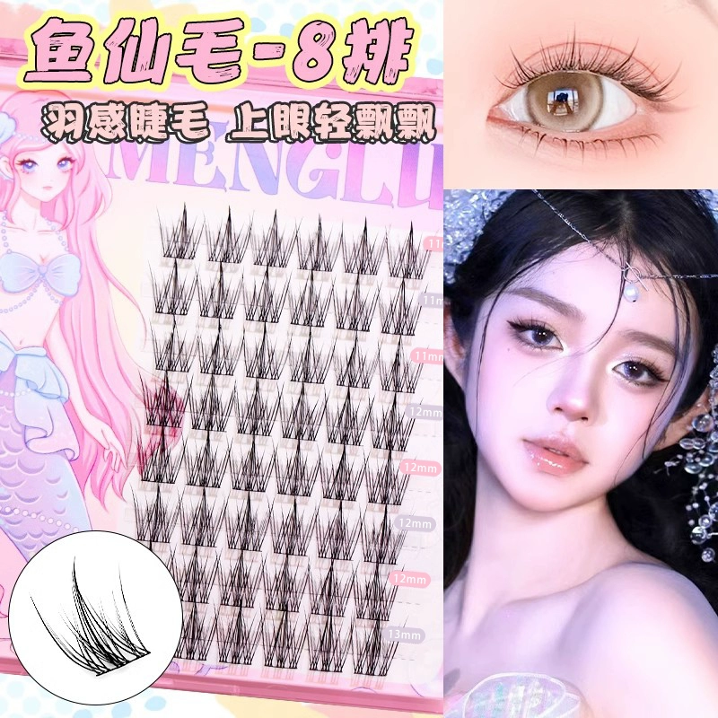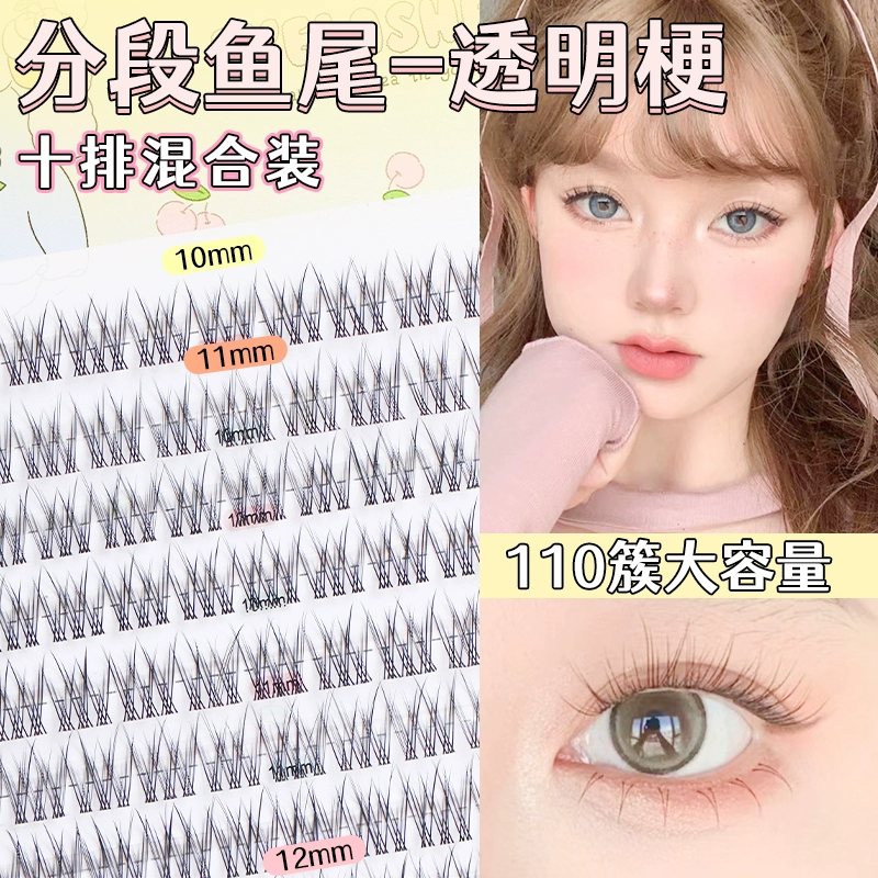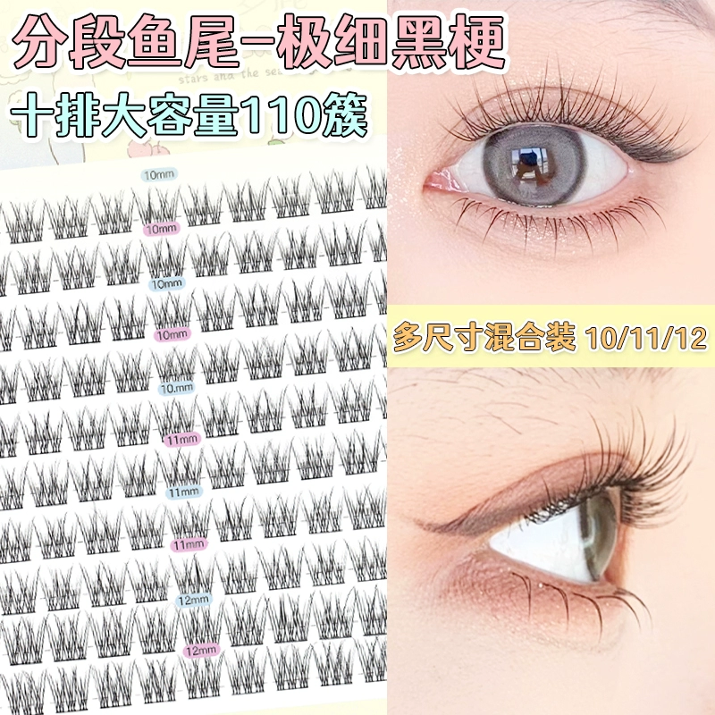 Menglu fishtail 110-segment thin black stem false eyelashes natural
