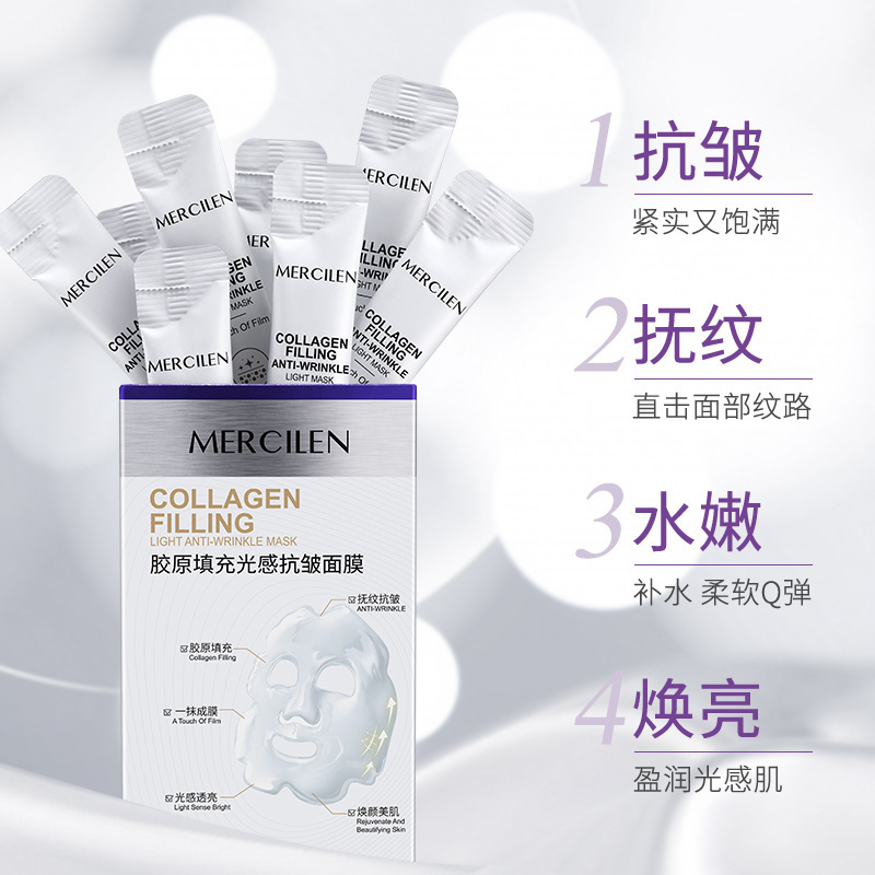 | nameOriginal | Mengxilan Collagen Filled Light-sensitive Anti-wrinkle Mask Moisturizing Fading Fine-lines Hydrating and Skin Rejuvenating Tear-off Mask |