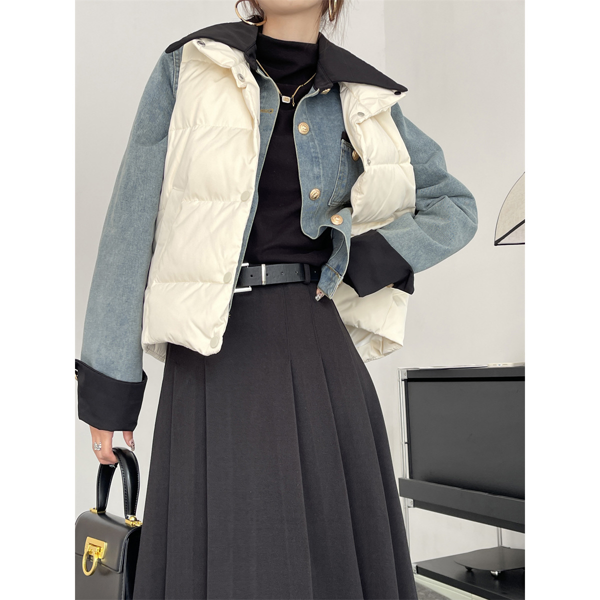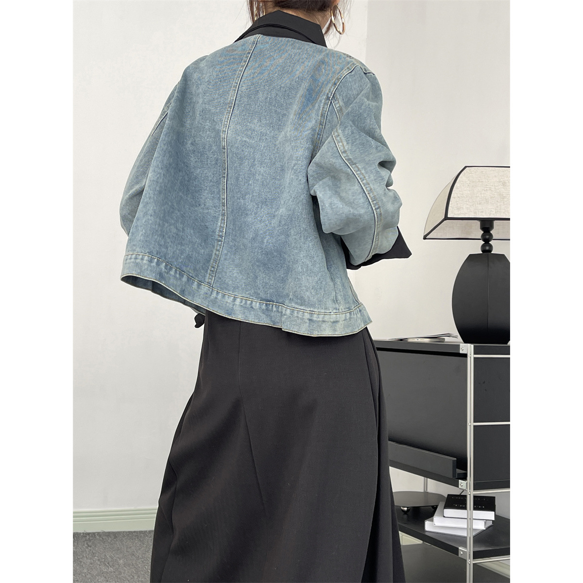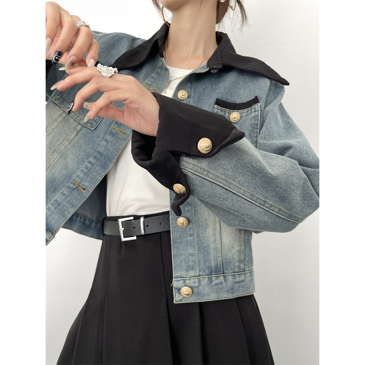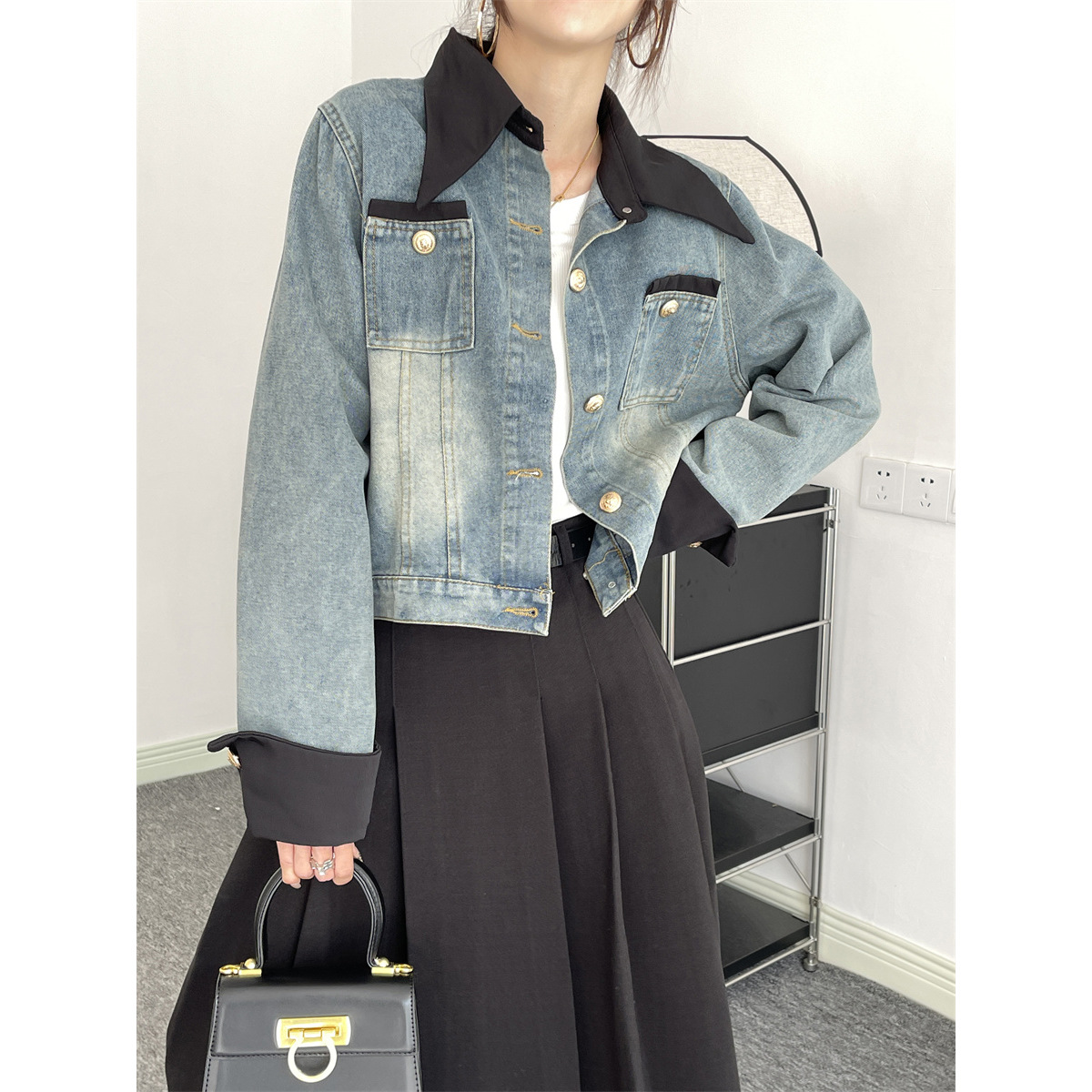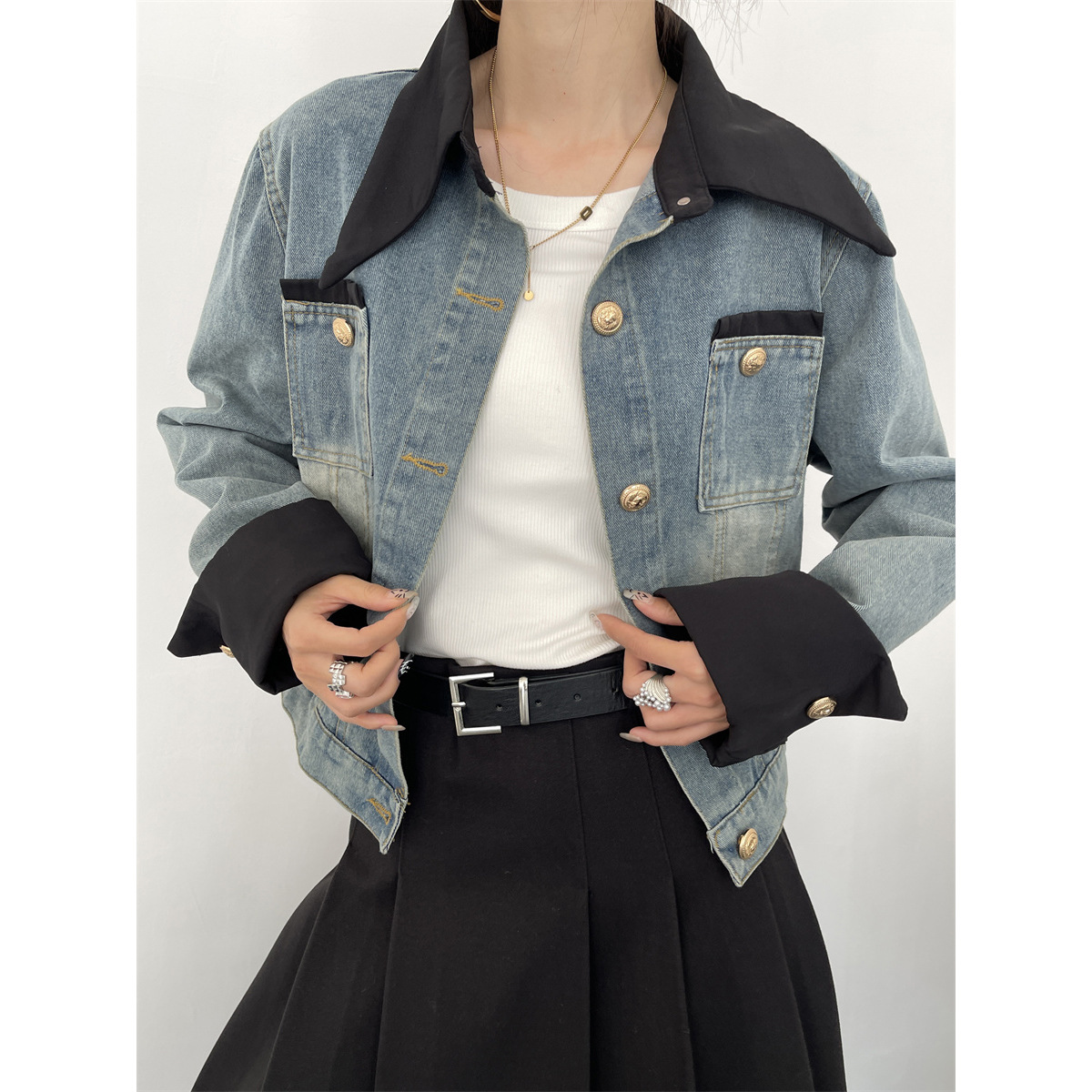| nameOriginal | Mengzi chic 2023 autumn and winter French pointed collar Denim coat female temperament commuter small jacket female X1665 |