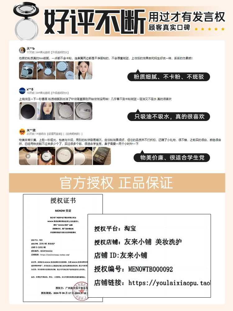 | nameOriginal | MENOW Powder Oil Control Makeup Long-lasting Flagship Genuine Concealer Loose Powder Matte Microdermabrasion Large White Powder Makeup |