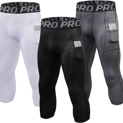 The LANDUNSI 3 Pack Mens Compression Pants 3/4 Running Football Tights with Pokects Dry Fit Workout Leggings Sports Baselayer is the perfect addition to any athlete’s wardrobe. These compression pants are designed to provide support and comfort during intense workouts, runs, or football games. The 3/4 length design ensures that the pants won’t ride up during activity, while the dry fit technology wicks away sweat to keep you cool and dry. The pants also feature pockets for convenient storage of small items like keys or a phone. The compression technology helps to improve blood flow and reduce muscle fatigue, allowing you to perform at your best for longer periods of time. These pants are perfect for any athlete looking to take their performance to the next level.