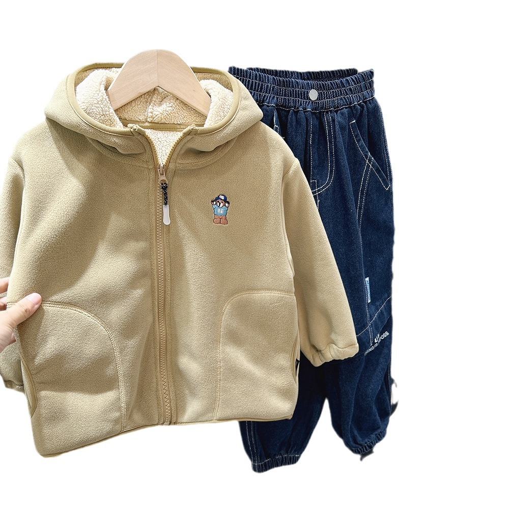 | nameOriginal | Men's and Children's Coat Autumn and Winter 2024 Korean Style Middle and Big Children's Zipper Shirt Baby's Thickened Lambskin Jacket Loose Trendy |