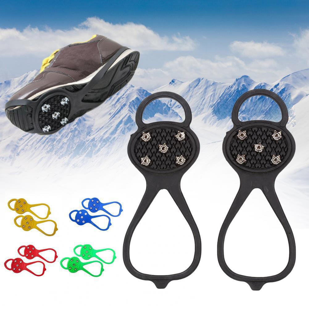 Men's and Women's Outdoor Mountain Climbing Camping Non-Slip 5-Tooth Ice Claw Non-Slip Shoe Cover Shoe Nail Silicone Sports Rock Climbing Ice Climbing Supplies