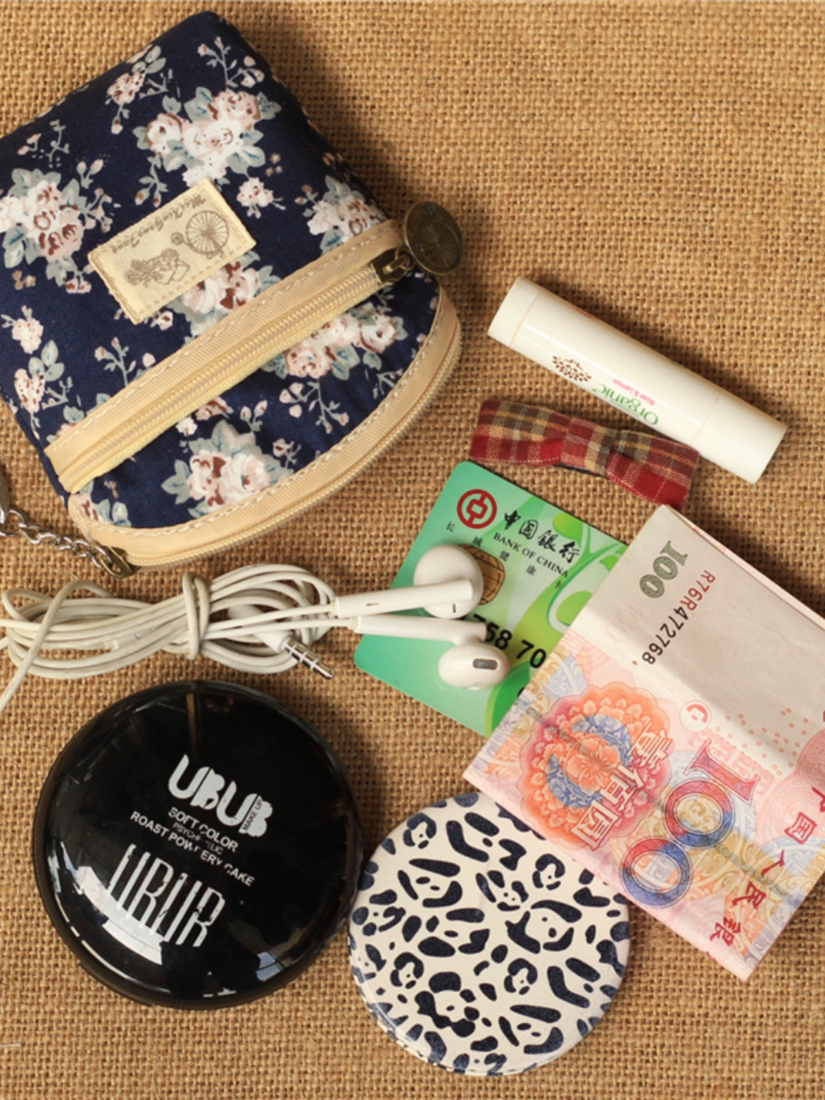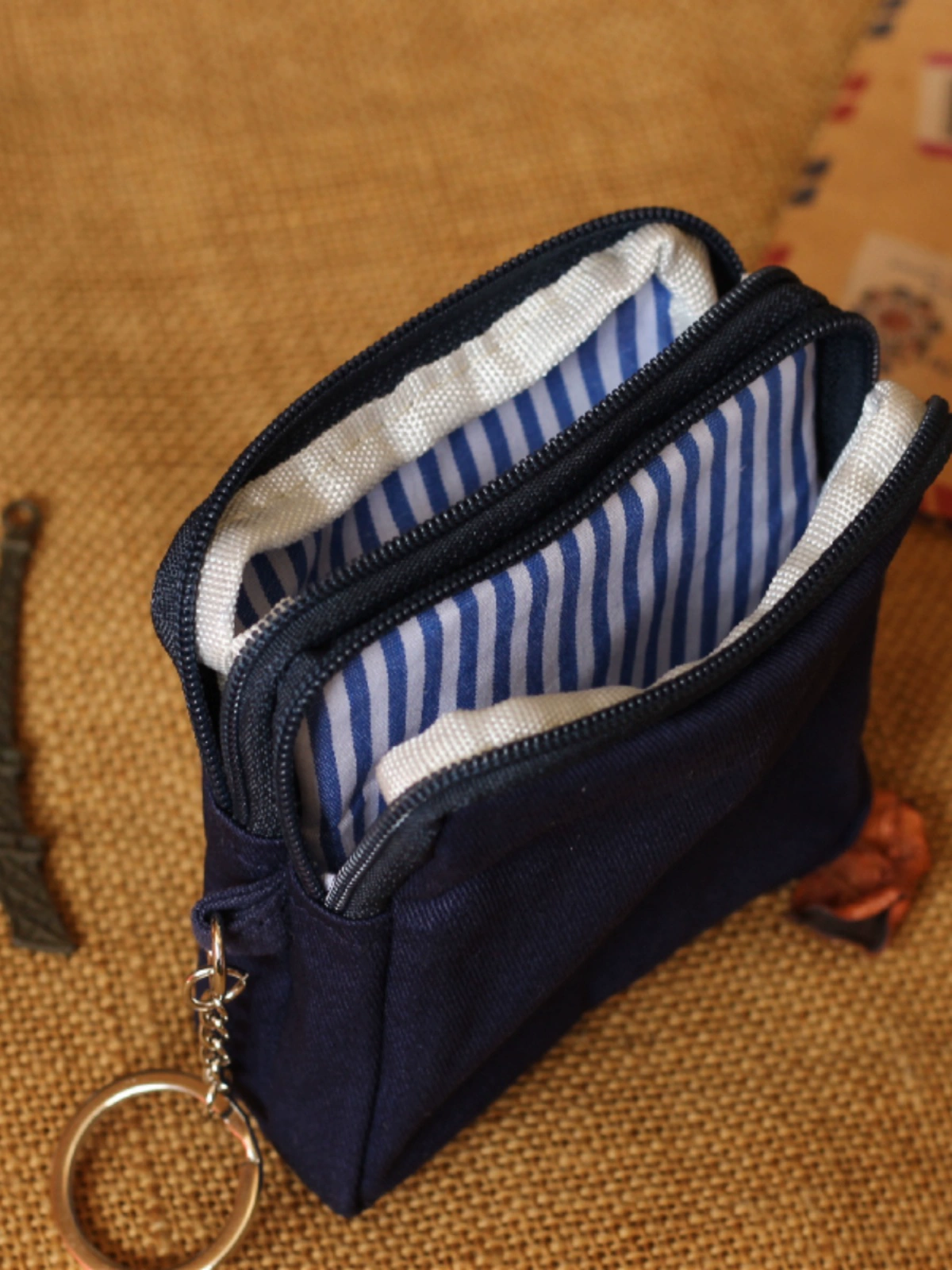 Men's and women's small coin purse, double-layer zipper, mini cloth bag for coins, keys, bank cards, earphones and cables