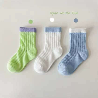 Men's and women's spring and summer color-blocked vertical striped children's socks