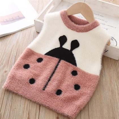 Men’s and Women’s Sweater Vest Western-style Mink Velvet Small and Middle-aged Children’s Vest Baby Knitted Shirt Baby Spring and Autumn