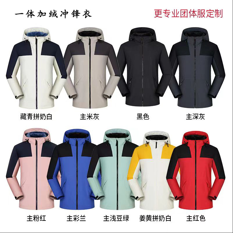 Men's and women's thin coat for autumn and winter three-in-one detachable outdoor fleece-lined windproof and rainproof custom printed LOGO