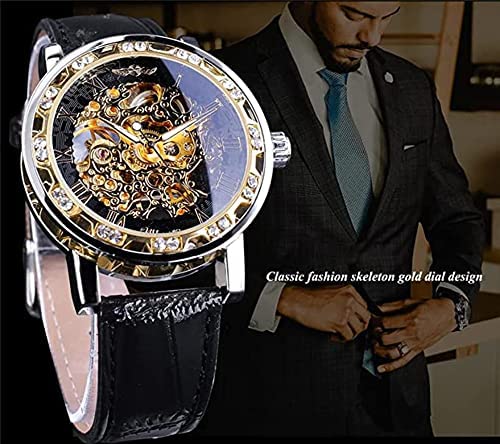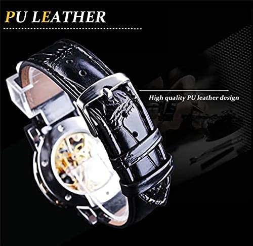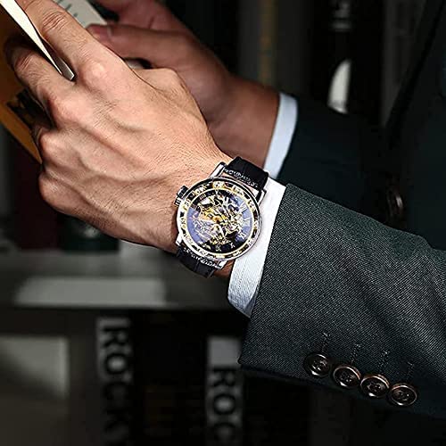 This mechanical watch comes with a durable stainless steel case and band that ensure longevity. Its skeleton dial design adds a touch of fashion to your style. Please note that the color may appear slightly different due to variations in computer monitors and natural color differences.