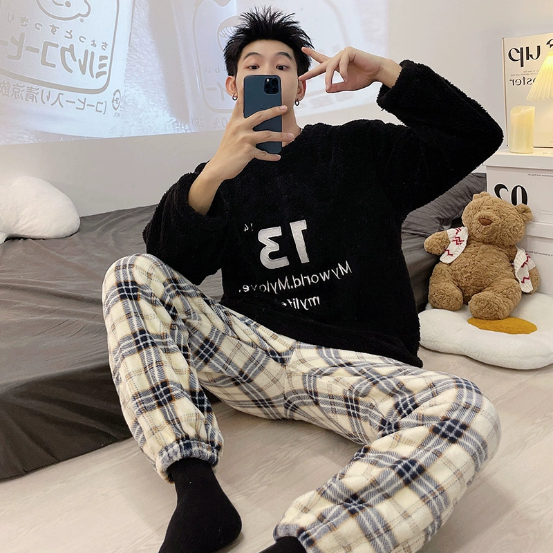 | nameOriginal | Men's Autumn and Winter Thickened Striped Flannel Pajamas |