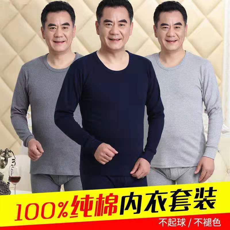 | nameOriginal | Men's Autumn Clothes and Pants Middle Collar suit Cotton Thermal Underwear for Middle-aged and Elderly Cotton Wool Autumn Clothes Round Neck Base Shirt plus size |