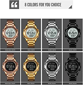 Introducing the Digital Watch for Prayer, the ultimate timepiece for devout Muslims. This watch features a Qibla compass, allowing you to easily determine the direction of Mecca for prayer. The Hijri calendar and bookmark function make it easy to keep track of important Islamic dates and passages. With the city selection function, you can set your location and receive accurate prayer times. The date and week display, along with the alarm and backlight functions, make this watch a practical choice for everyday use. Plus, with 3ATM waterproofing, you can wear it with confidence in any weather. This watch makes a thoughtful and meaningful gift for any Muslim man in your life.