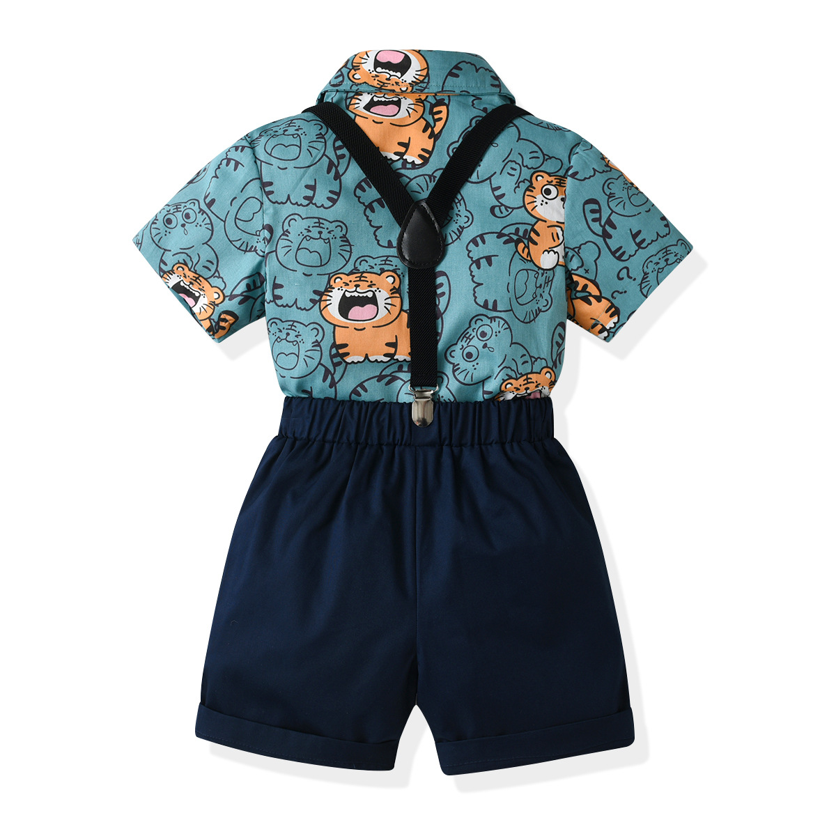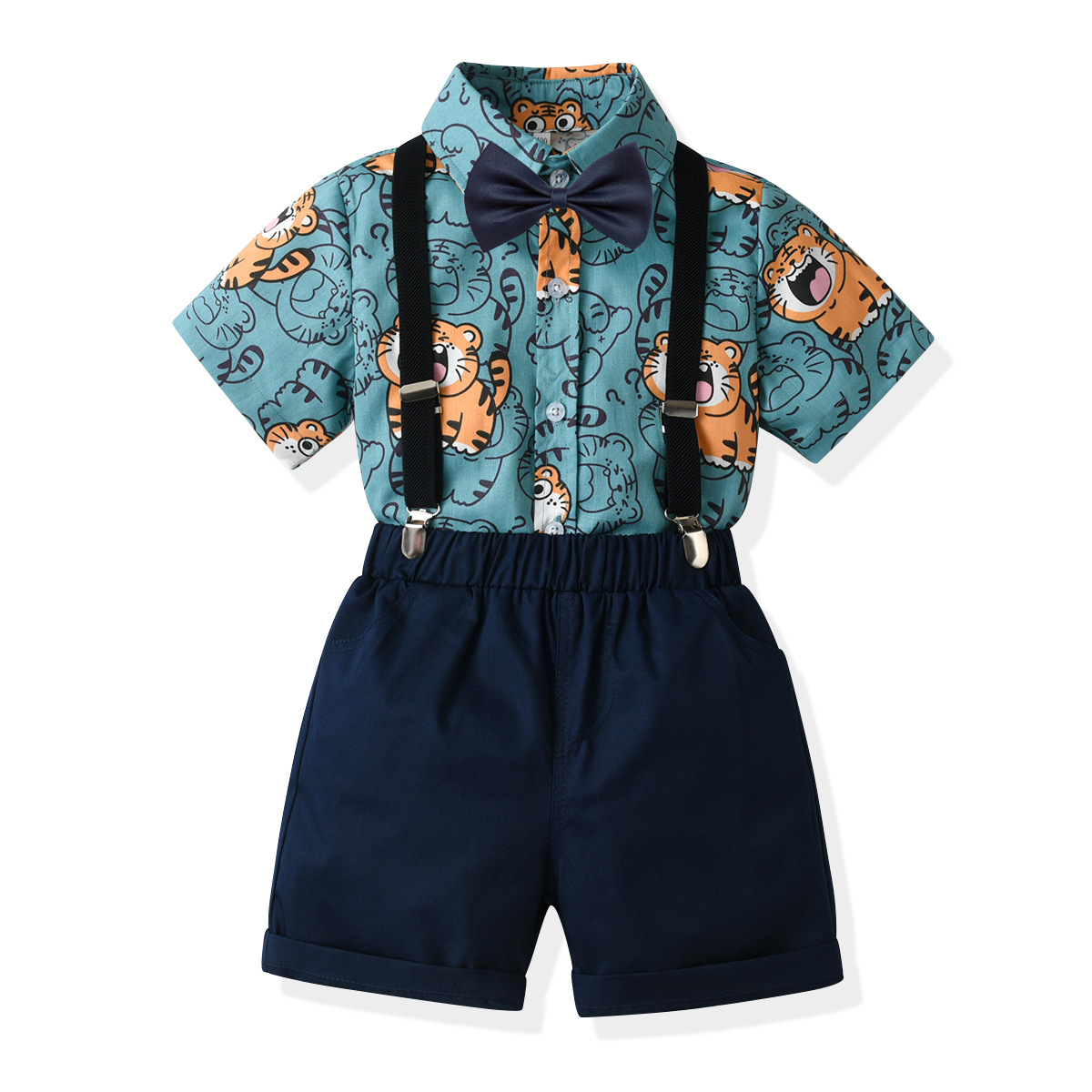 Men's baby bow tie suspender short sleeve shorts four-piece cute tiger suit
