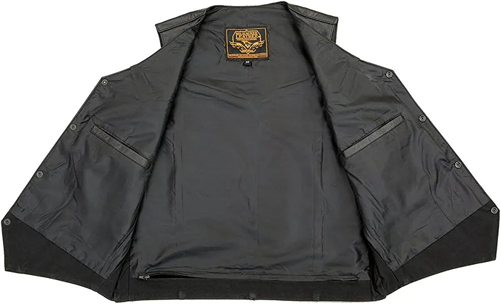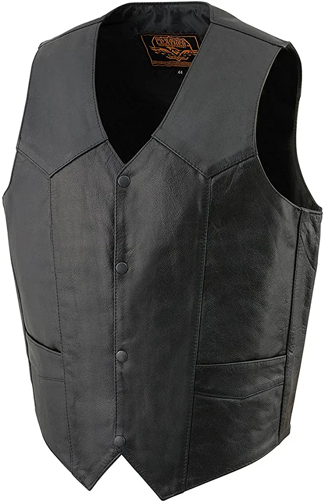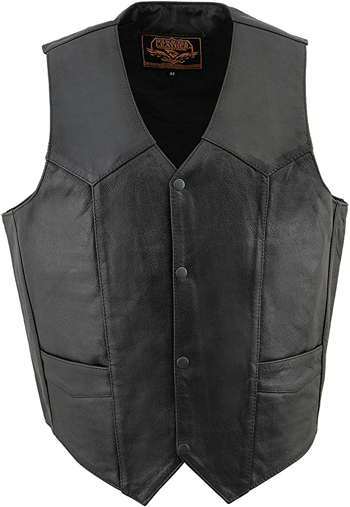 | nameOriginal | Milwaukee Leather SH1310 Men's Classic Black Leather Vest with Snap Button Closure – 52 |