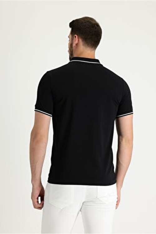 | nameOriginal | Men's Black Polo Neck Slim Fit Embroidered Jersey T-Shirt |