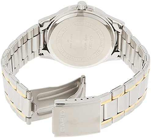 Casio Enticer watch features an attractive black dial that accentuates your appearance. The high-quality stainless steel make of this Casio watch ensures long-term durability.The Casio Enticer Watch enhances your appearance with its sophisticated and stunning look. It features an attractive black dial that never fails to draw attention. The sturdy stainless steel bracelet exudes an elegant and polished look. This Casio watch features a stainless steel case that will surely get you complements with its classy appearance. The quartz movement gives this timepiece the precision to deliver accurate time for seasons to come. A sturdy mineral crystal glass and 50m water resistance rating gives you the freedom to wear this watch in any weather. All the more, the sturdy and smooth stainless steel bracelet with gold tones offer outstanding comfort for prolonged wearing.