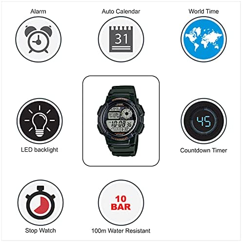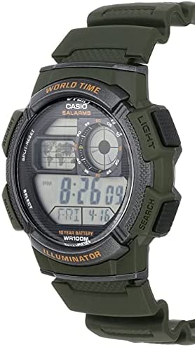 The Casio Sports Watch for Men is a versatile timepiece that combines fashion and functionality seamlessly. Its round dial is securely enveloped by a resin bezel that adds to its style quotient. The flexible resin band can be adjusted to fit your wrist comfortably. This watch is perfect for frequent travelers, thanks to its world map function. The LED backlight ensures clear visibility even in low-light conditions.