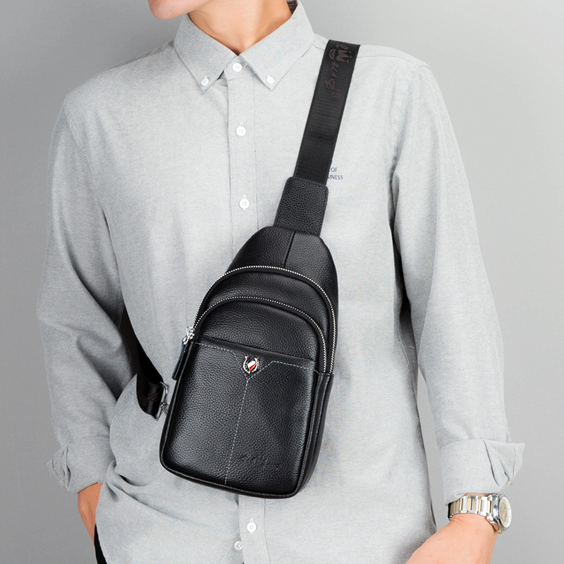 Men's Chest Bag 2024 New Fashion Brand Genuine Leather Bag Cowhide Shoulder Crossbody Bag Casual Small Backpack