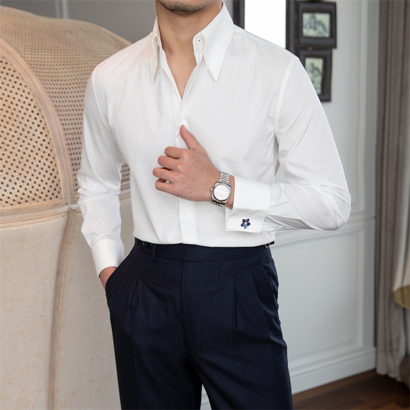 | nameOriginal | Men's commuter long-sleeved British large peak collar white shirt |