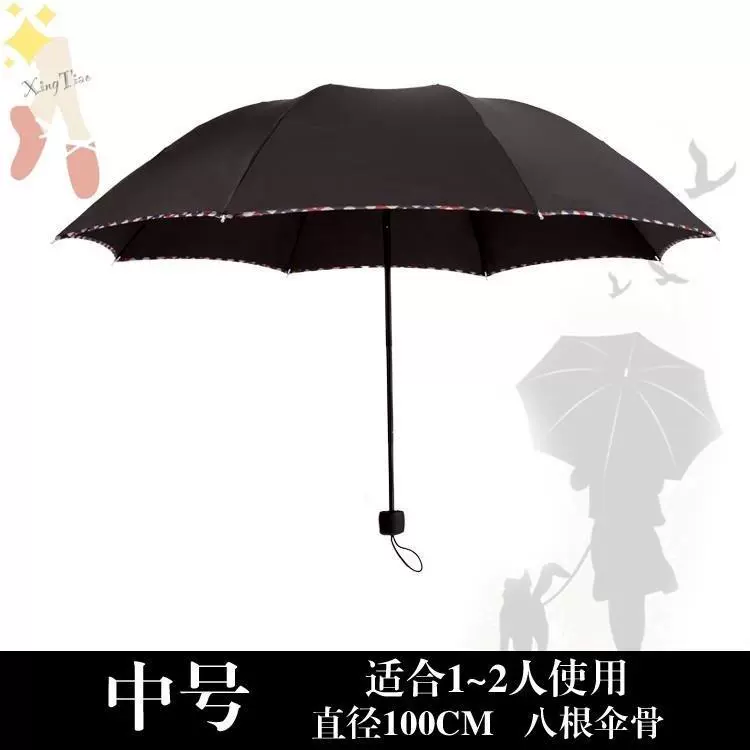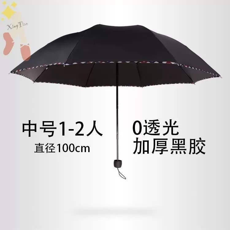 | nameOriginal | Men's compact pure black Korean-style umbrella folding non-automatic dual-use Korean-style adult double umbrella primary school student strong |