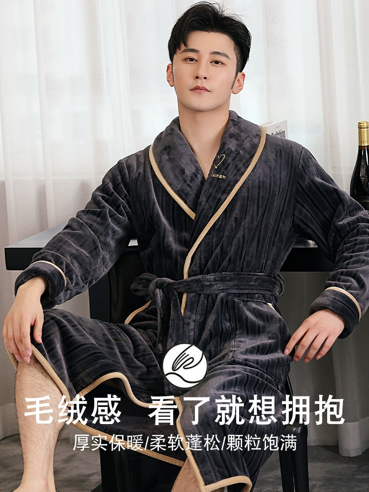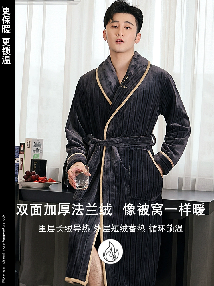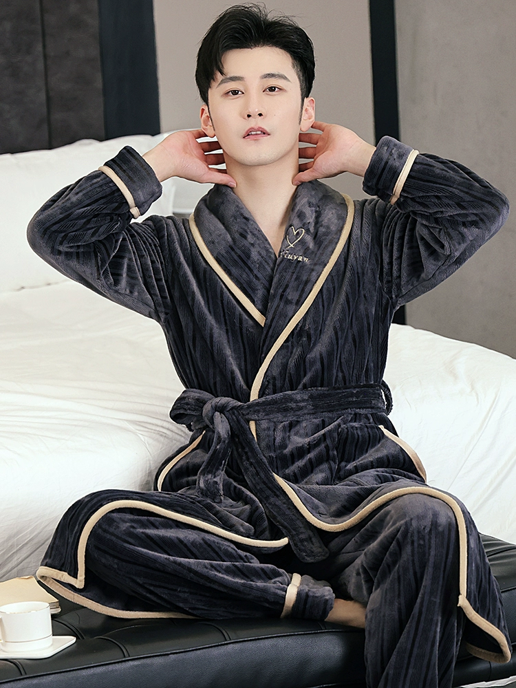 | nameOriginal | Men's Coral Fleece Thickened Plus Velvet Winter Flannel Pajamas Set Men's Pants Autumn and Winter Long Warm Bathrobe |