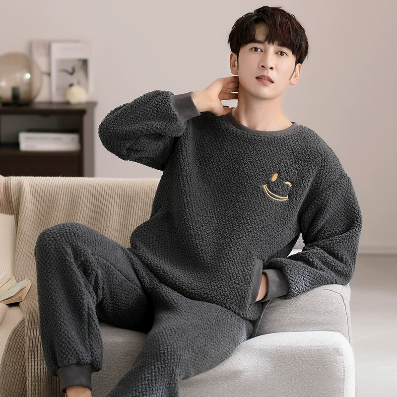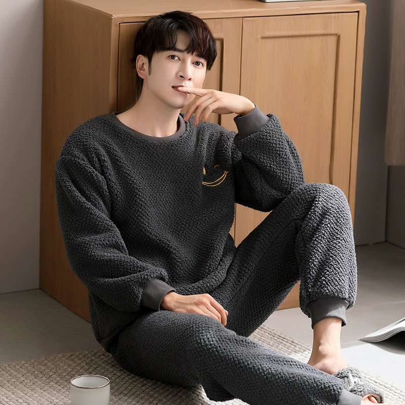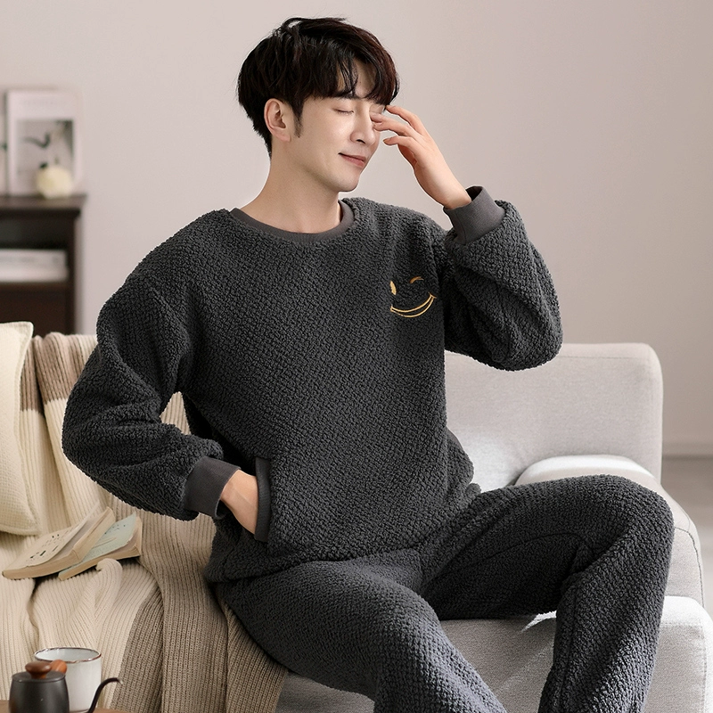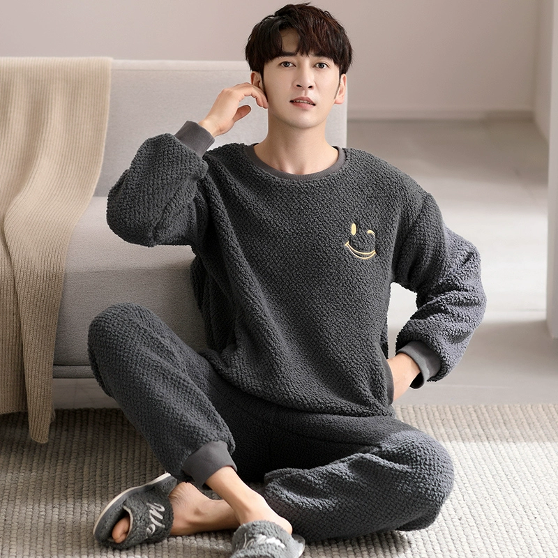 | nameOriginal | Men's coral velvet pajamas autumn and winter thickened plus velvet warm round neck pullover flannel home wear casual suit |