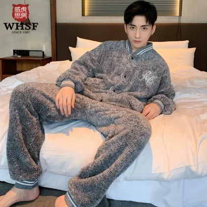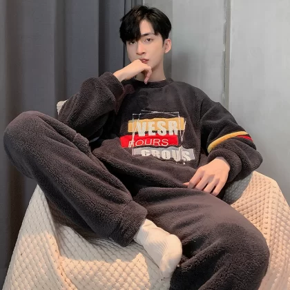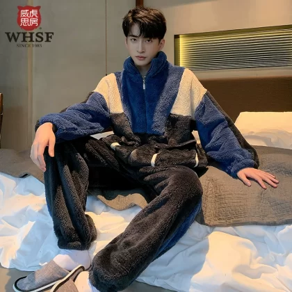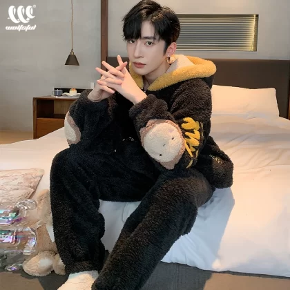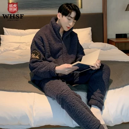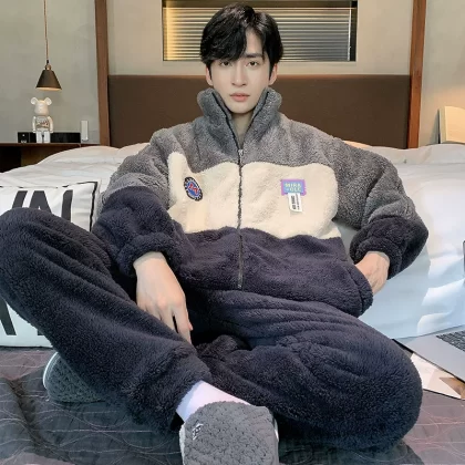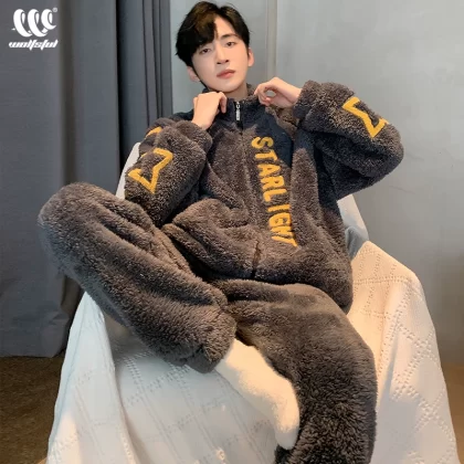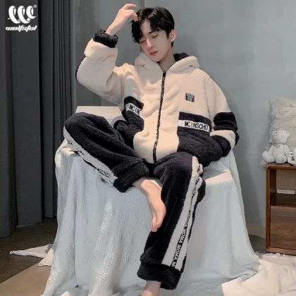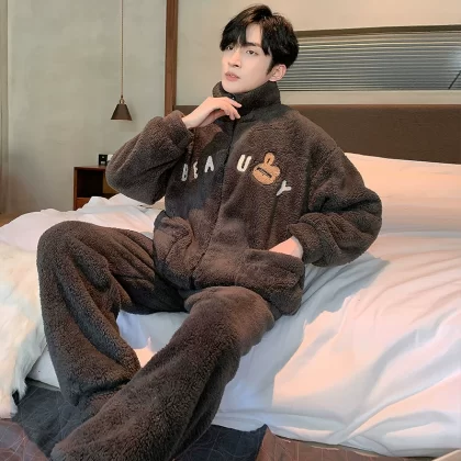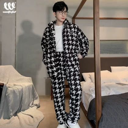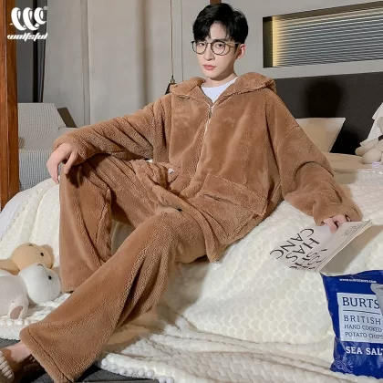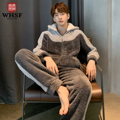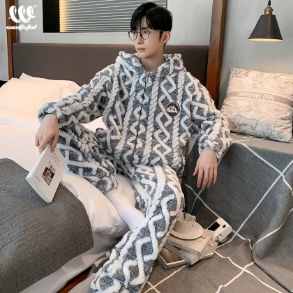| nameOriginal | Men's coral velvet pajamas, autumn and winter thickened velvet, fashionable casual zipper hooded wearable home wear set |