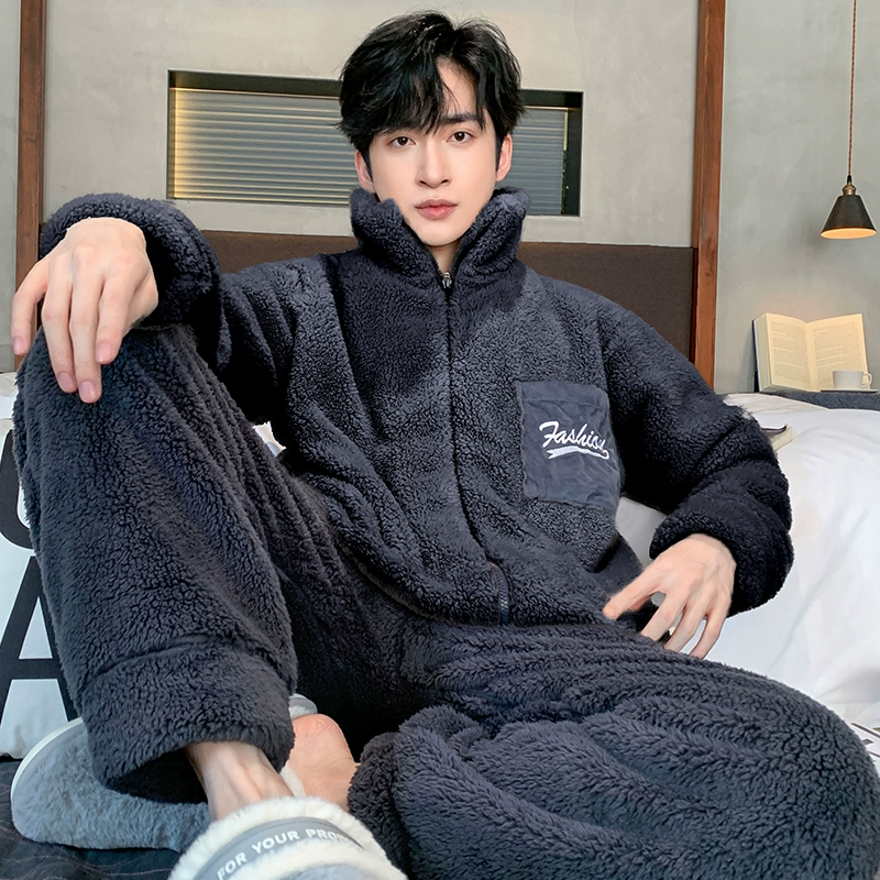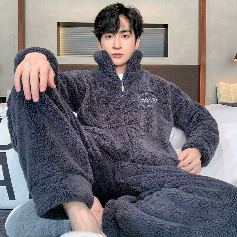| nameOriginal | Men's Coral Velvet Pajamas Men's Winter Plus Velvet Thickened Autumn and Winter Youth Stand Collar Warm Home Clothing Set |