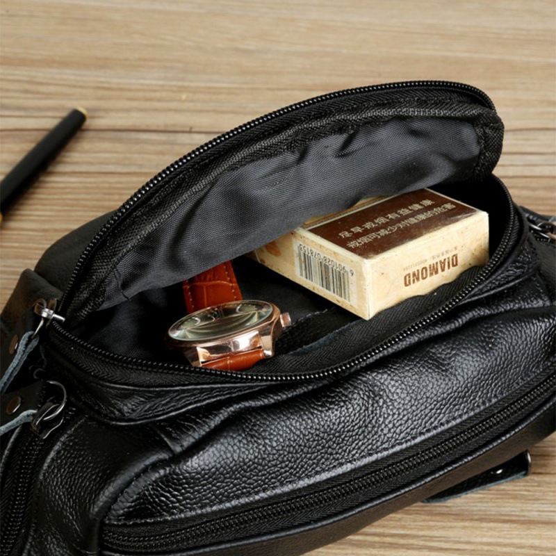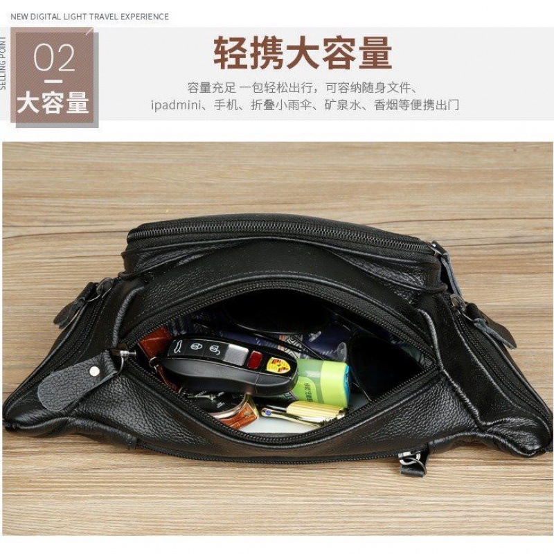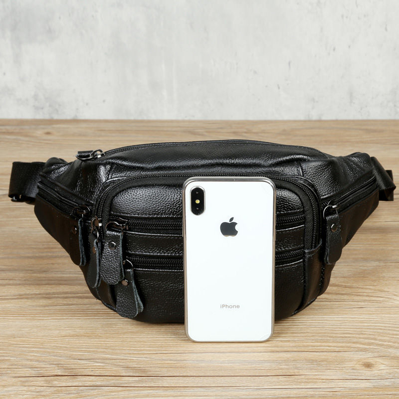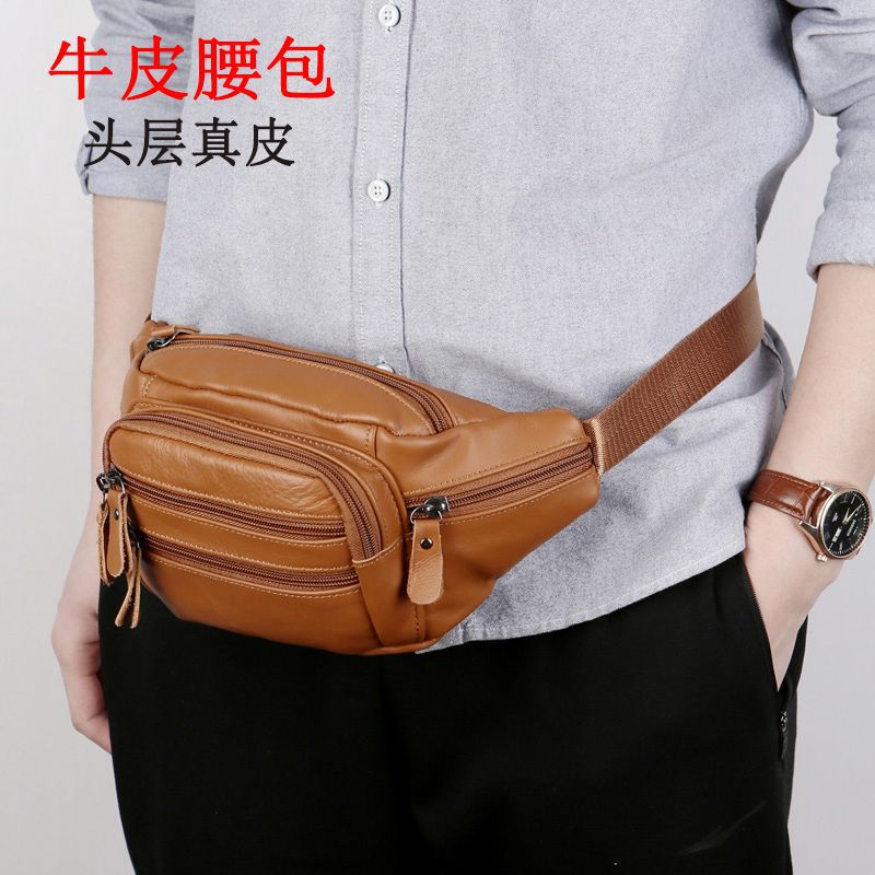 Men’s cowhide waist bag multi-functional large capacity cash register business bag outdoor sports fitness running mobile phone bag