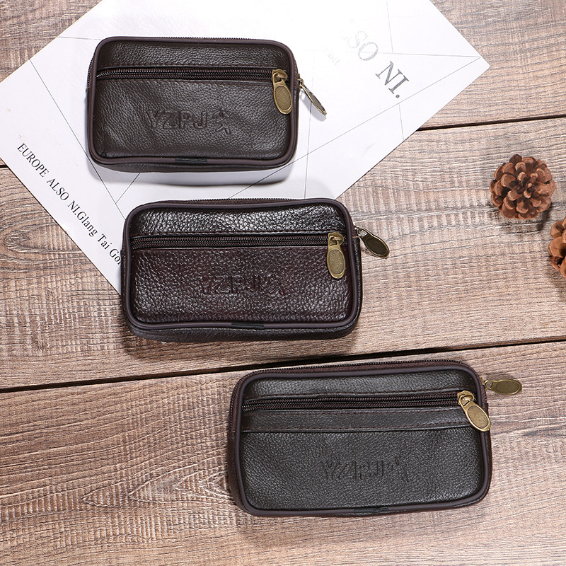 Men's Cowhide Zipper Mobile Phone Waist Bag Cowhide Mobile Phone Bag Middle-aged and Elderly Coin Purse Running Jianghu Night Market Stall Hot Sale