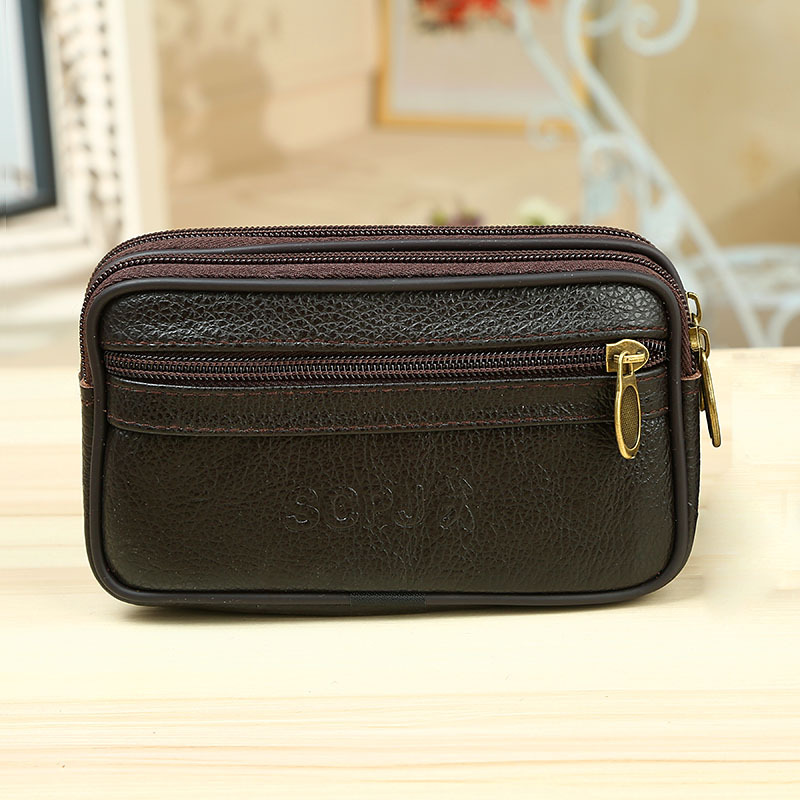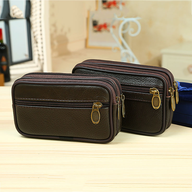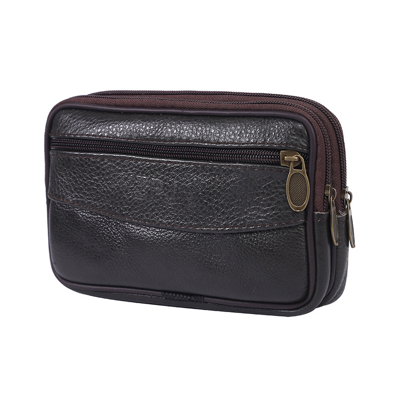 Men’s Cowhide Zipper Mobile Phone Waist Bag Cowhide Mobile Phone Bag Middle-aged and Elderly Coin Purse Running Jianghu Night Market Stall Hot Sale