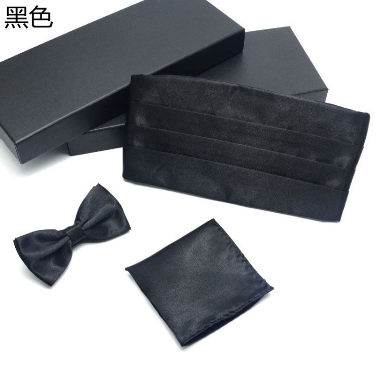 | nameOriginal | Men's Dress Waist Seal Bow Tie Pocket Square Three-Piece Set Gift Box Wedding New Best Man Tuxedo Suit |