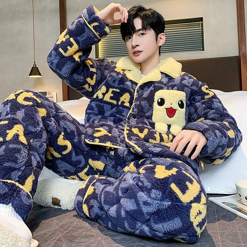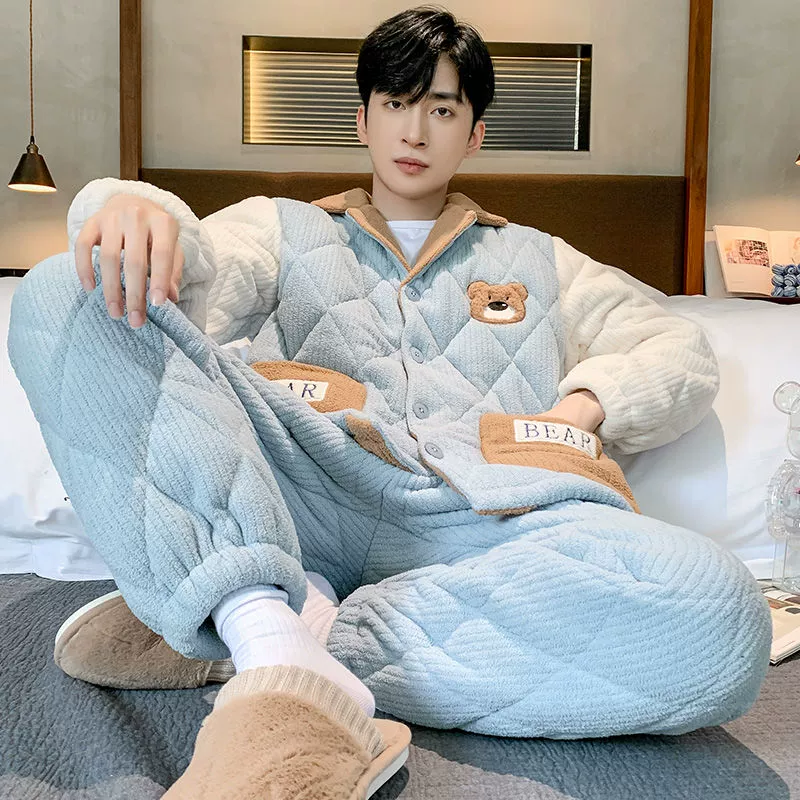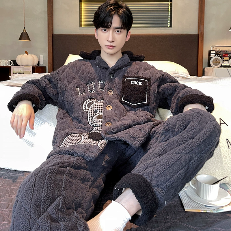 | nameOriginal | Men's fleece quilted thermal suit youth winter pajamas |