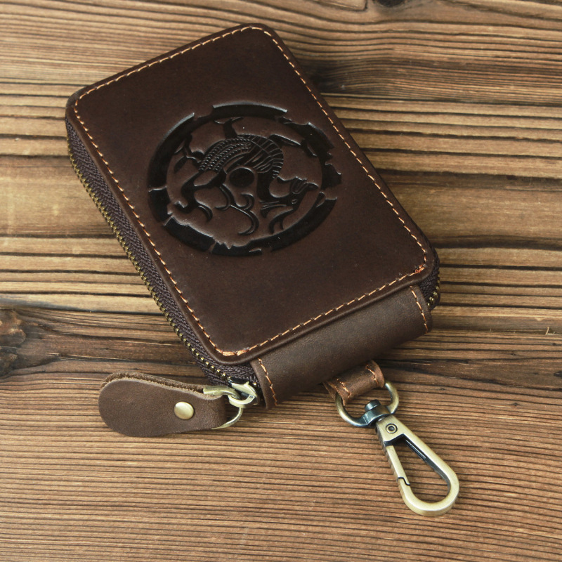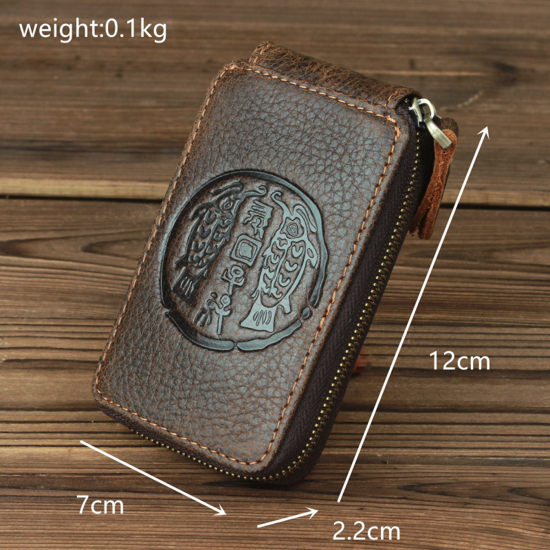 Men's Genuine Leather Totem Key Bag Casual Vintage Card Bag Crazy Horse Leather Cowhide Car Lock Key Bag