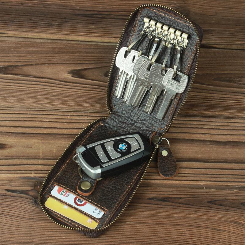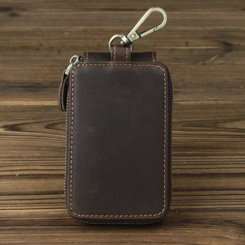 Men’s Genuine Leather Totem Key Bag Casual Vintage Card Bag Crazy Horse Leather Cowhide Car Lock Key Bag
